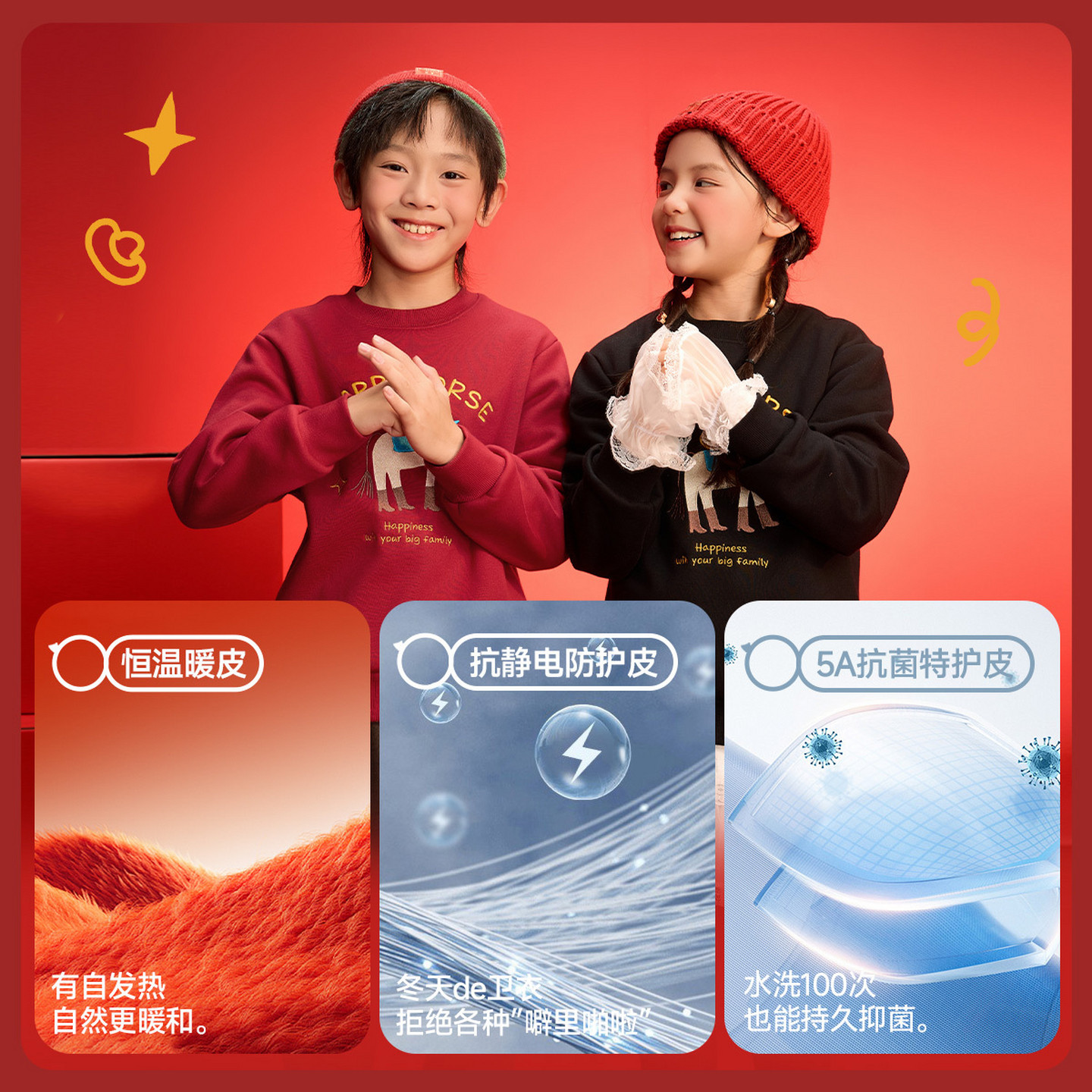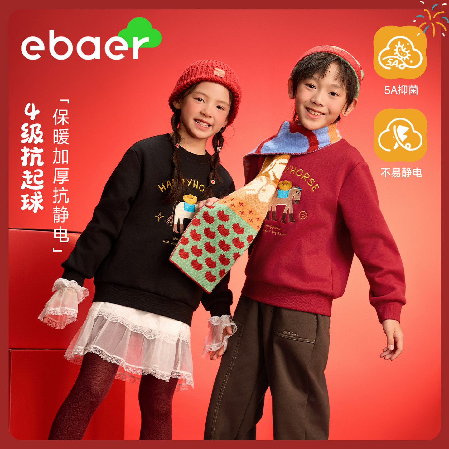 📚 EBAER童装儿童加绒卫衣2026冬季新款男女童马年拜年服保暖红色潮