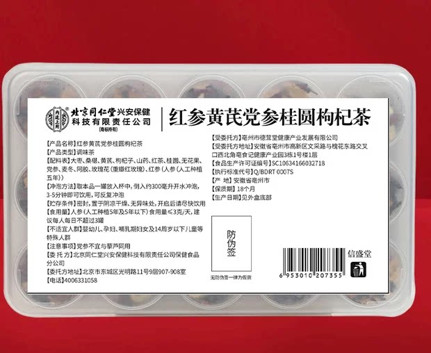 📚 北京同仁堂黄芪搭当归党参补气养血女士调理补气血红枣枸杞养生茶
