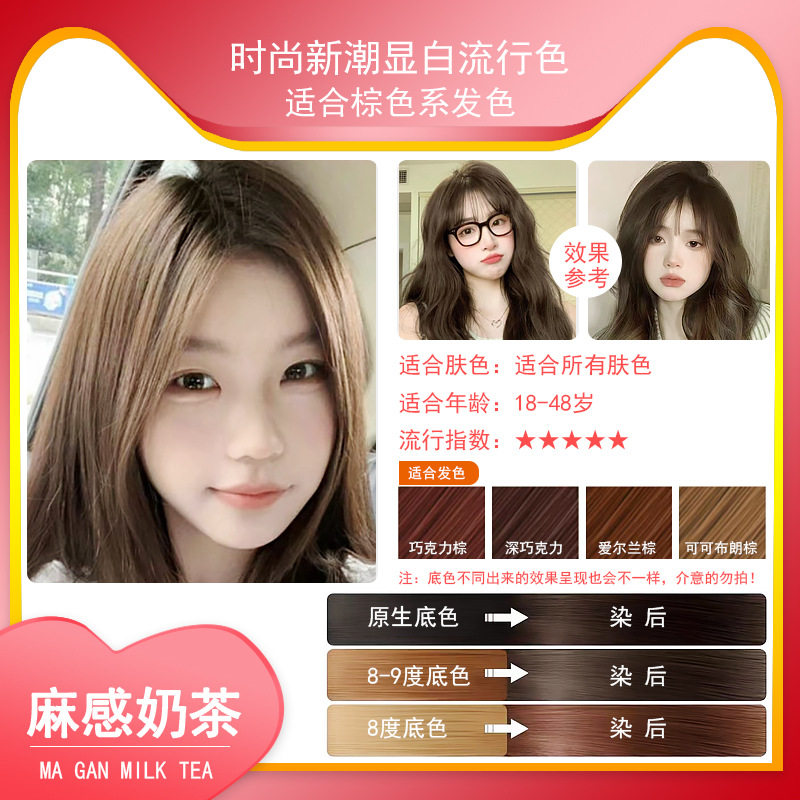 📚 冷雾黑巧染发剂自己在家染头发麻感奶茶灰棕色染发剂2025流行色