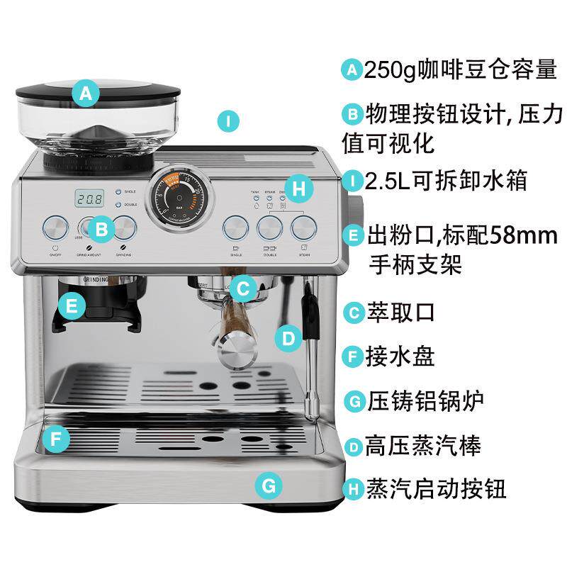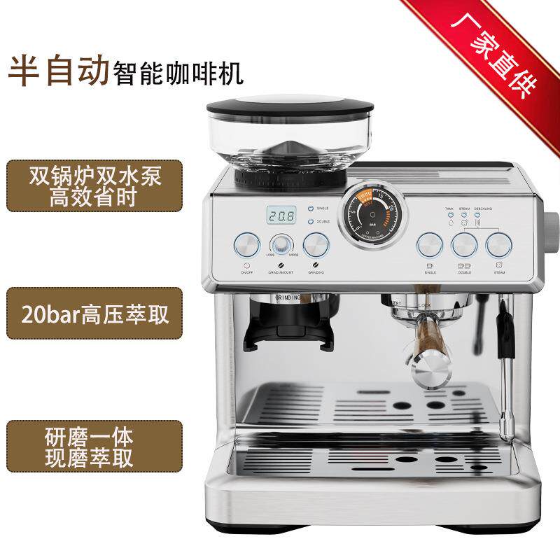 📚 意式全半自动咖啡机双锅炉泵压式20bar咖啡机萃取研磨一体外贸