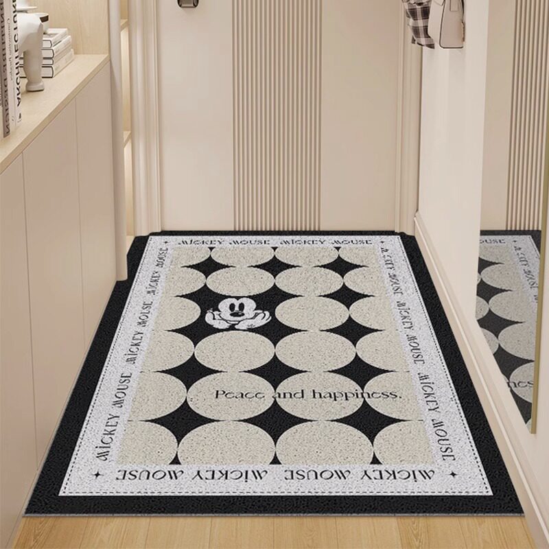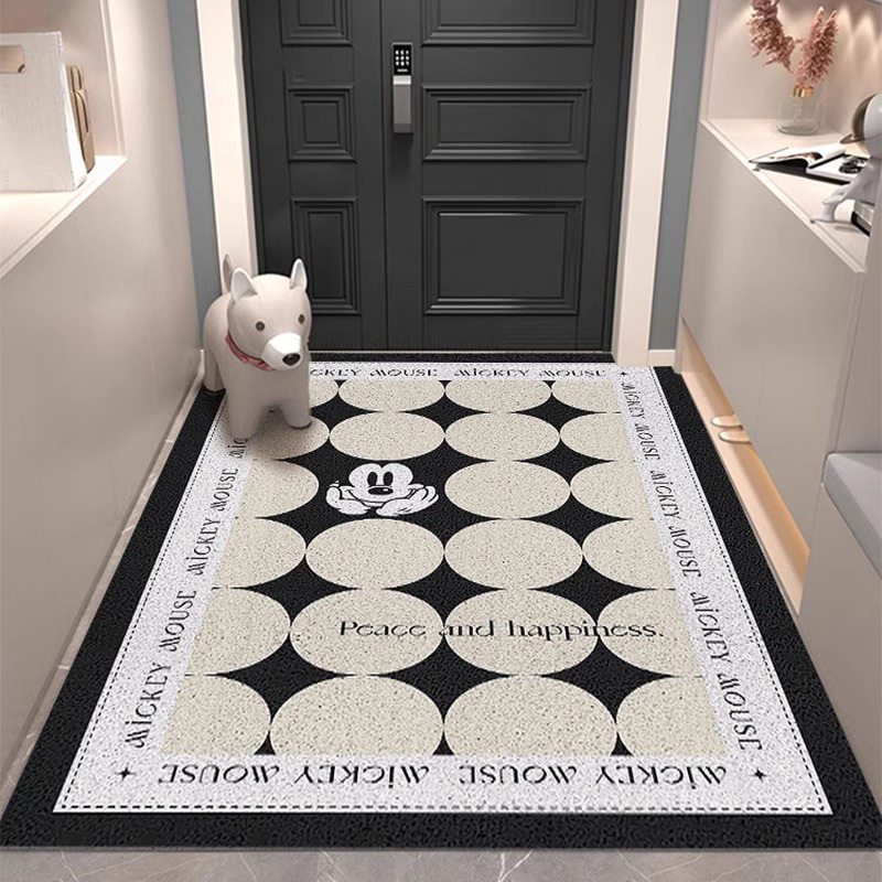 📚 米奇竖版入户门地垫进门脚垫门垫pvc耐脏丝圈可裁剪黑白门口地毯