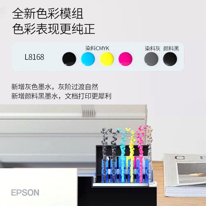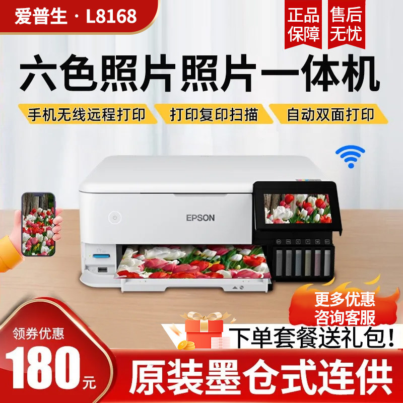 📚 爱普生L8168彩色原装墨仓式六色喷墨照片打印机照相馆复印l8188