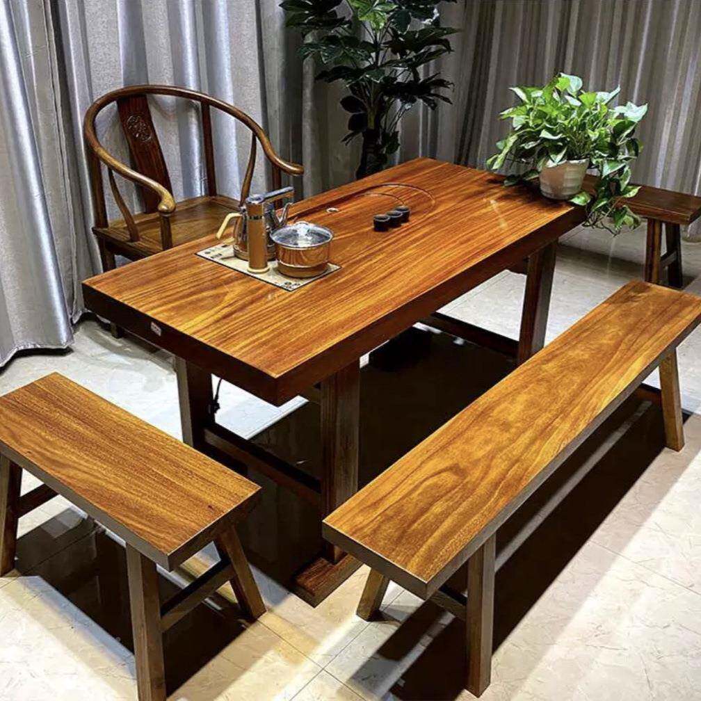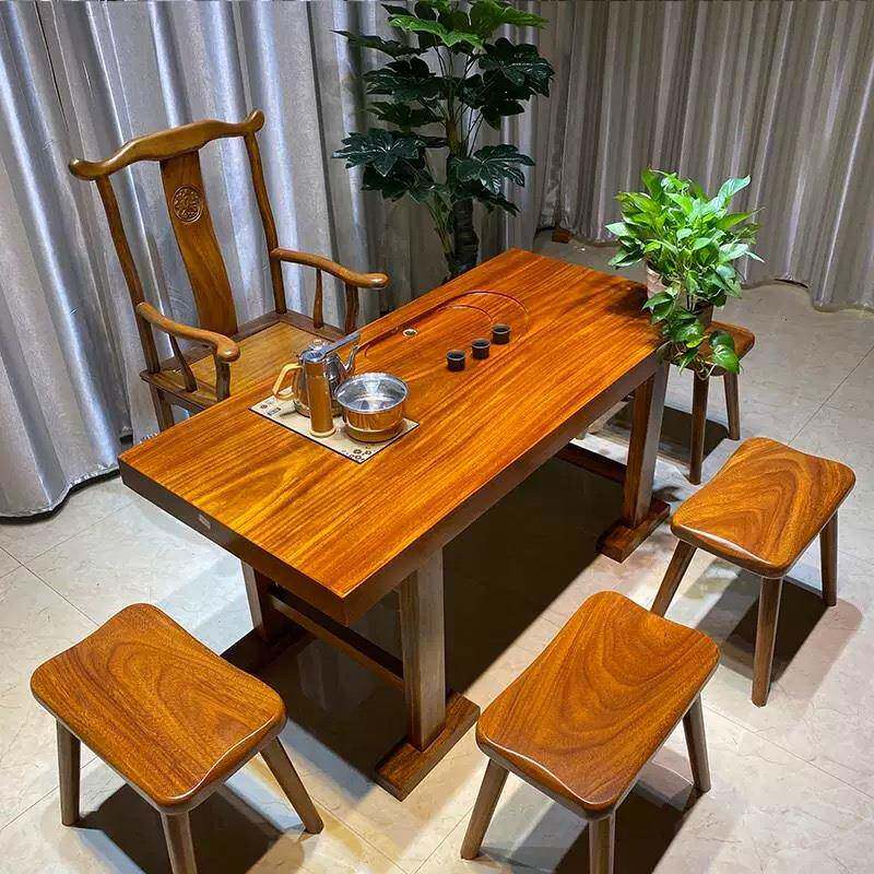 📚 茶奥坎整实木大板非洲19绿心檀湿泡电组合套新中式原木板桌椅装茶