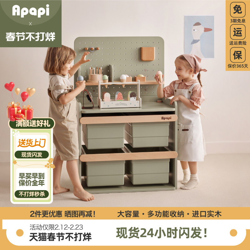 📚 Apapi儿童玩具收纳架全实木喂养台收纳柜宝宝置物整理箱储物架