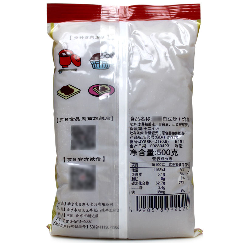 📚 京日白豆沙500g白扁豆蛋糕裱花面包馅料冰皮桃山皮月饼皮家用