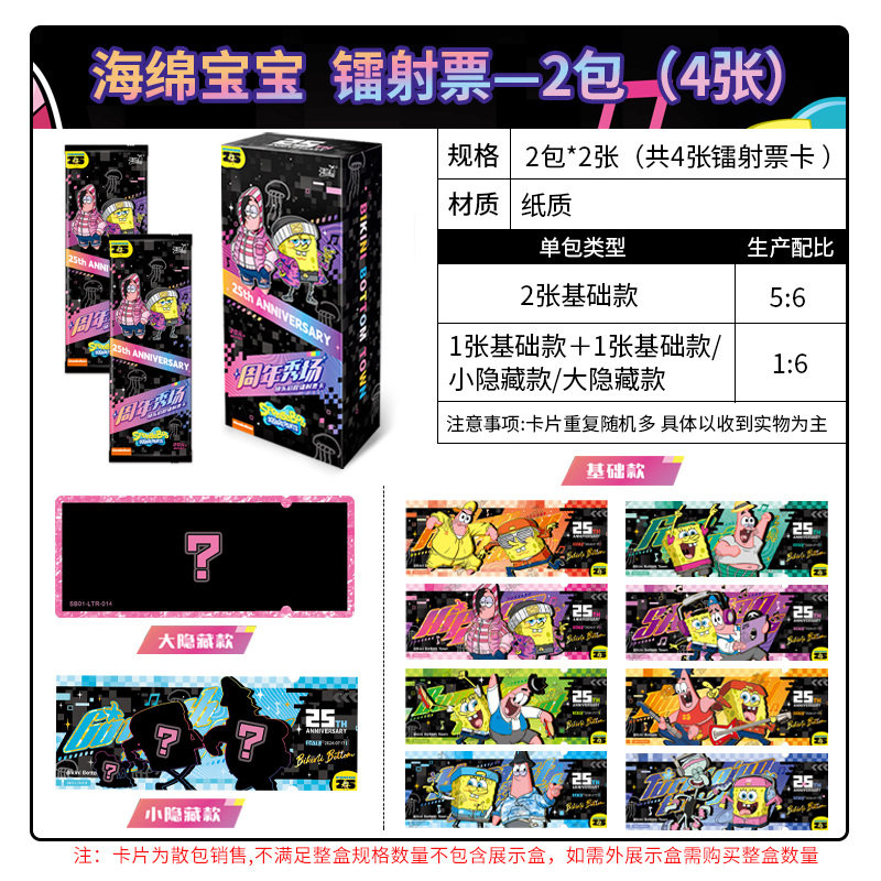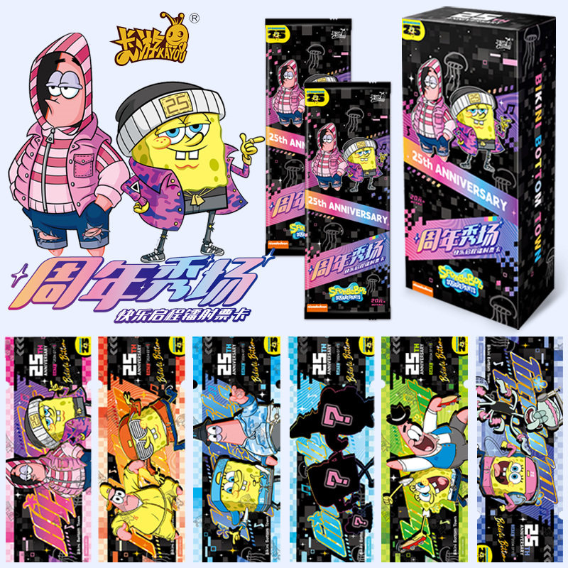 📚 卡游海绵宝宝镭射票卡片快乐启程周年秀场第1弹一整盒盲盒小卡牌