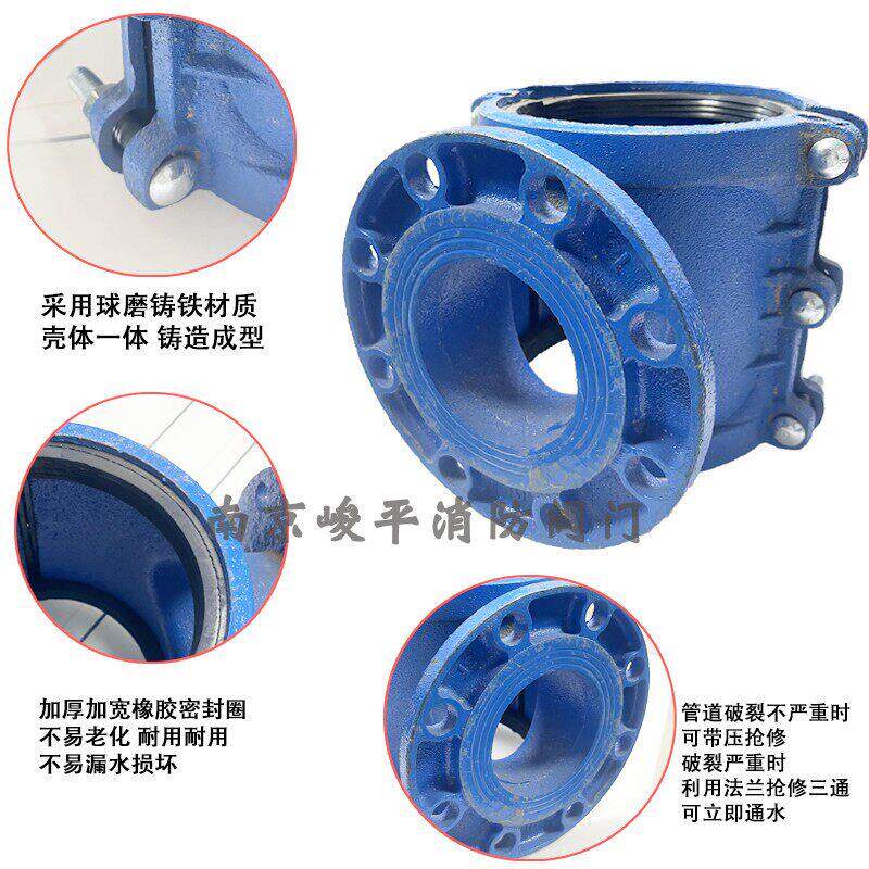 📚 哈夫节三通铸铁法兰分水三通马鞍铸铁PE钢管管道增接口抱箍抢修器