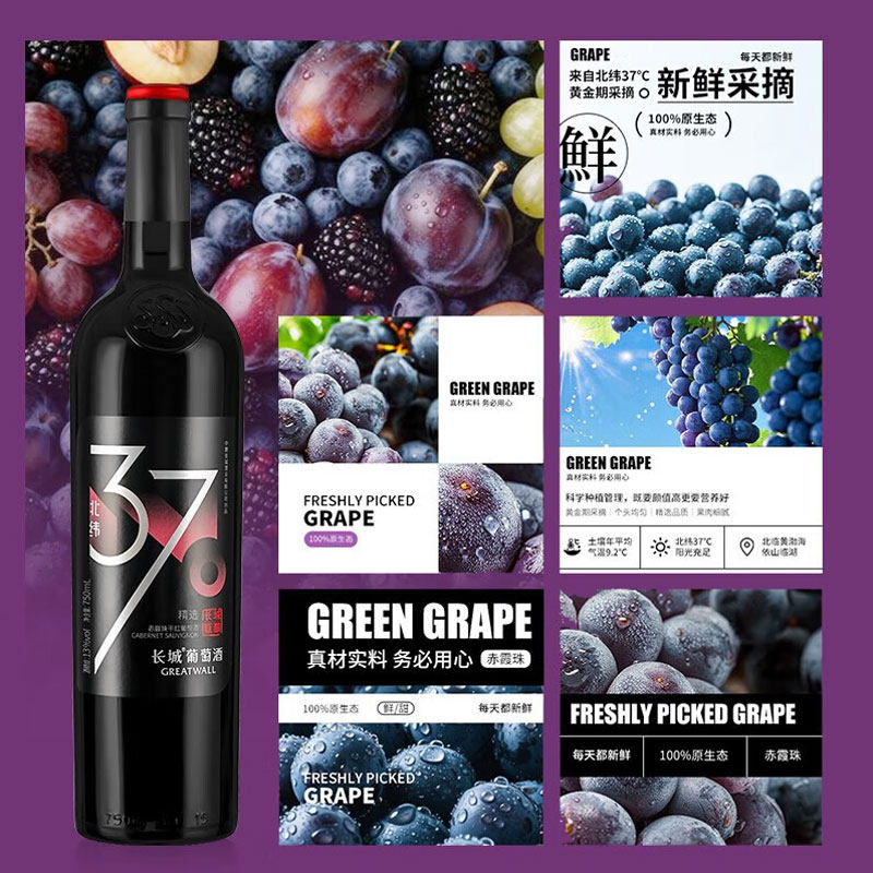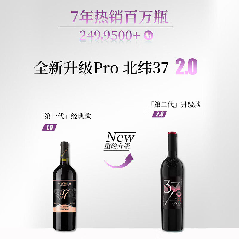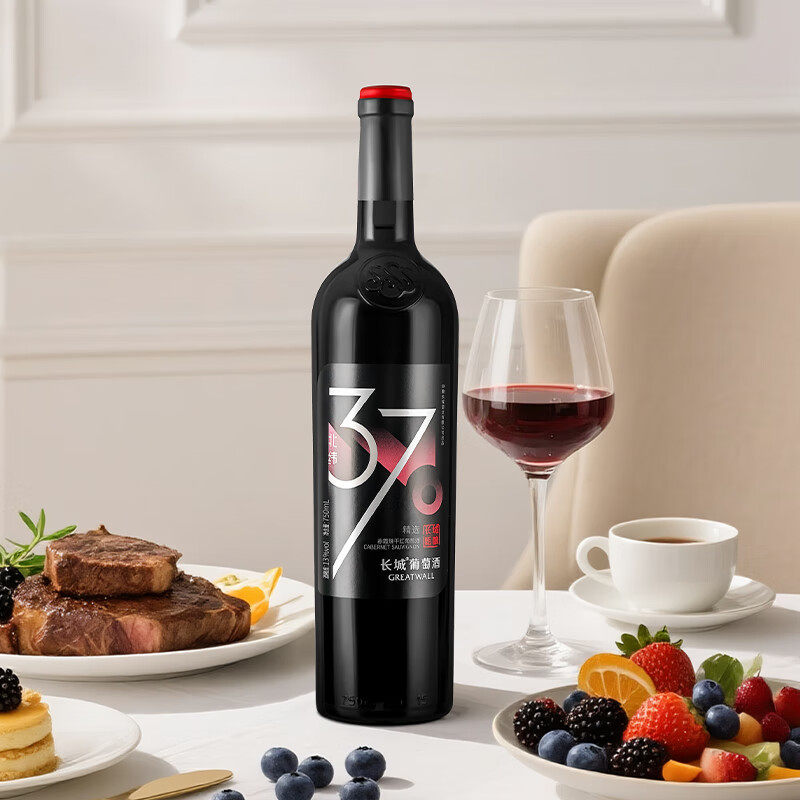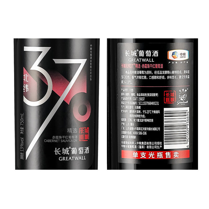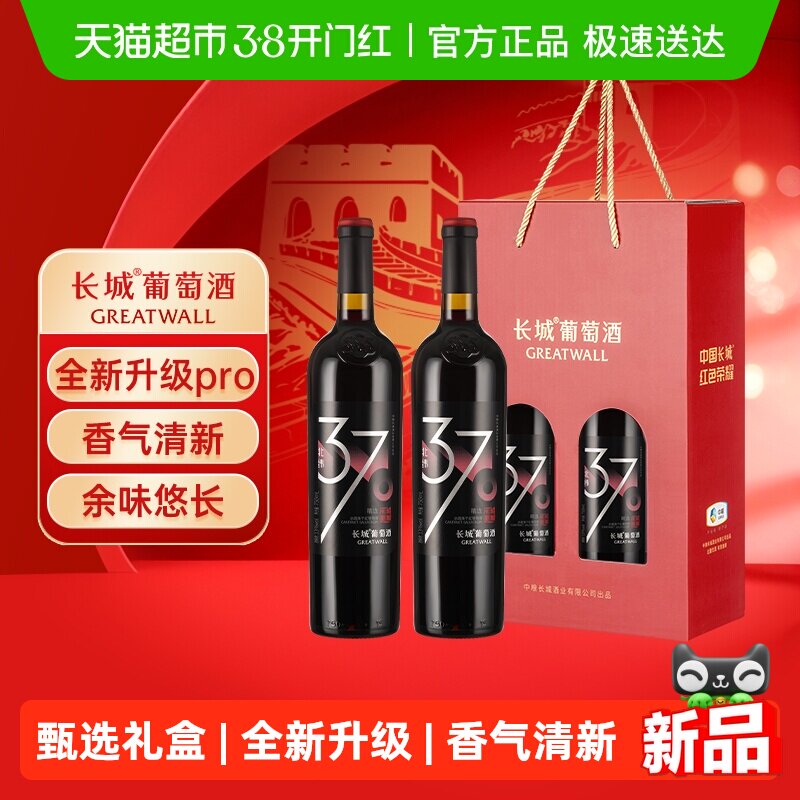 📚 长城甄酿北纬37精选级赤霞珠干红葡萄酒年货送礼红酒礼盒750ml*2