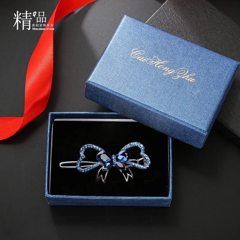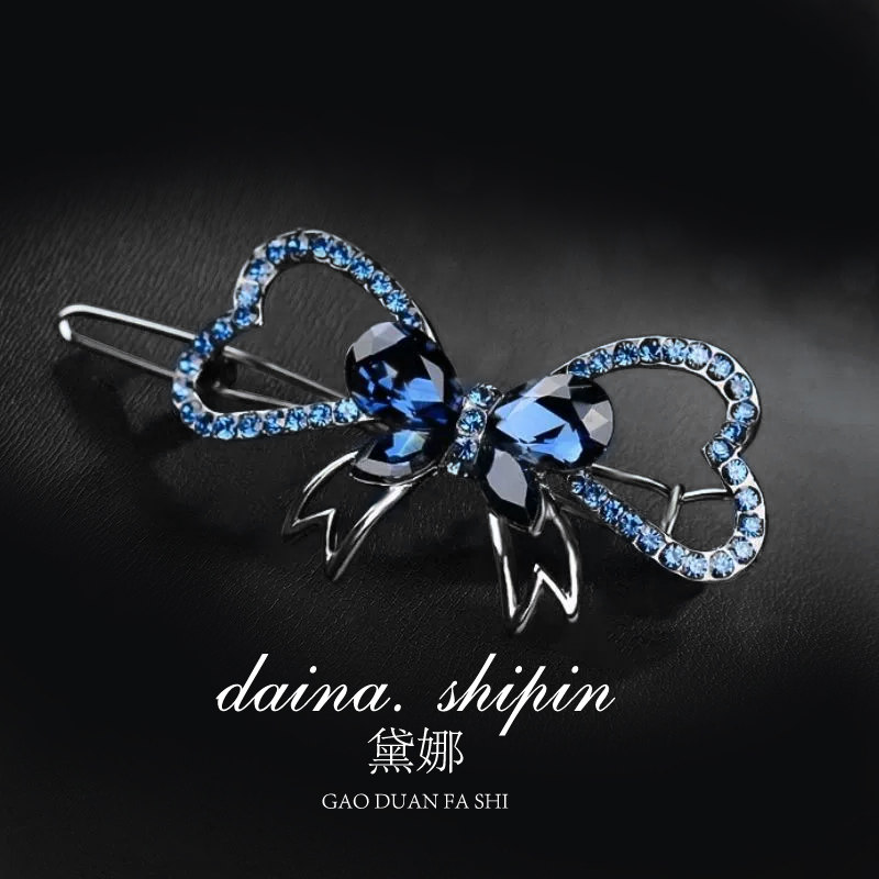 📚 水钻蝴蝶结发夹女侧边刘海夹一字夹后脑勺青蛙扣横夹发卡头饰前额