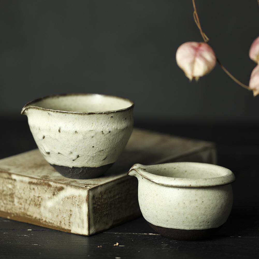 📚 景德镇粉引均杯公道杯手捏片口日式陶艺可养开片分茶陶器茶海