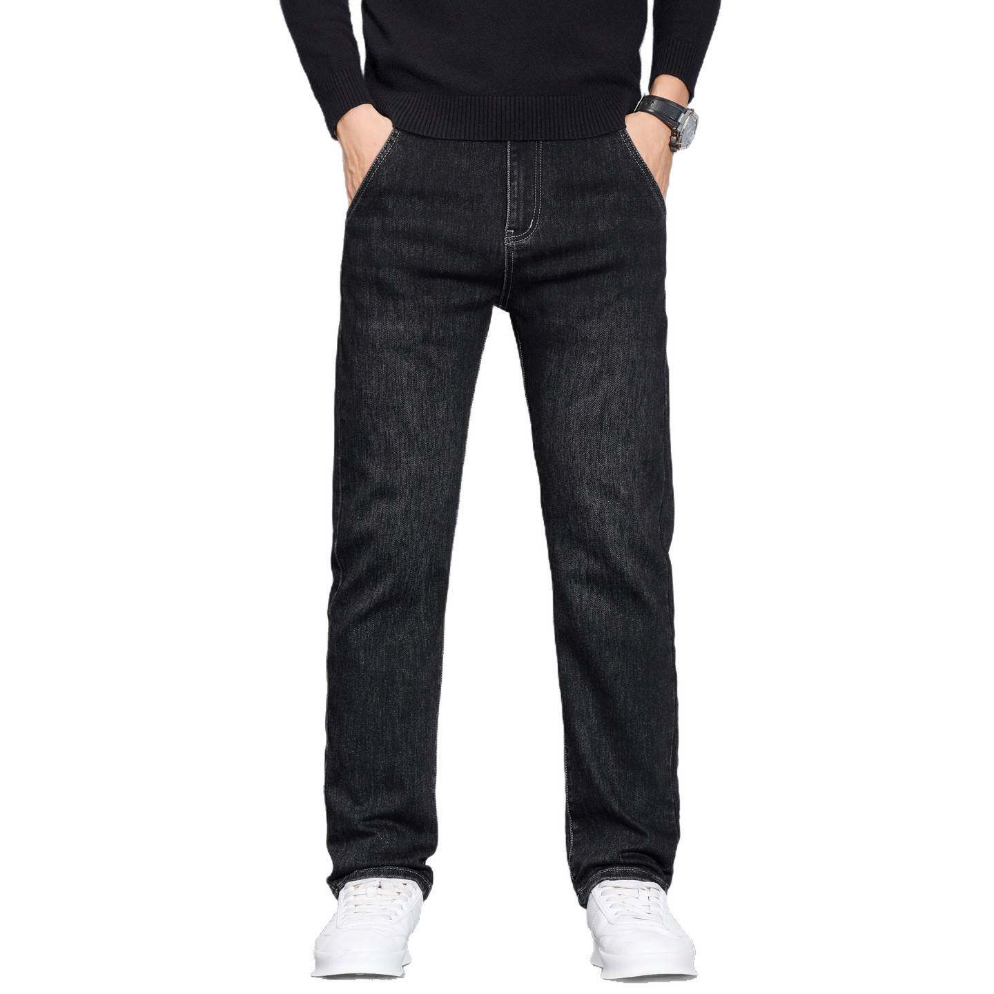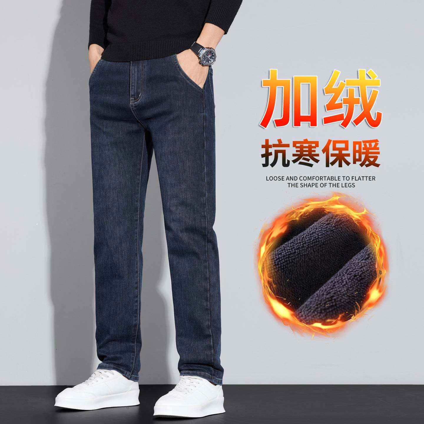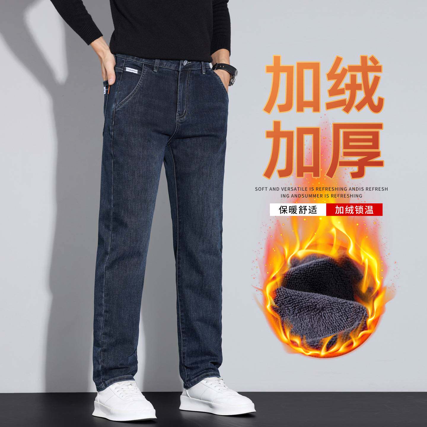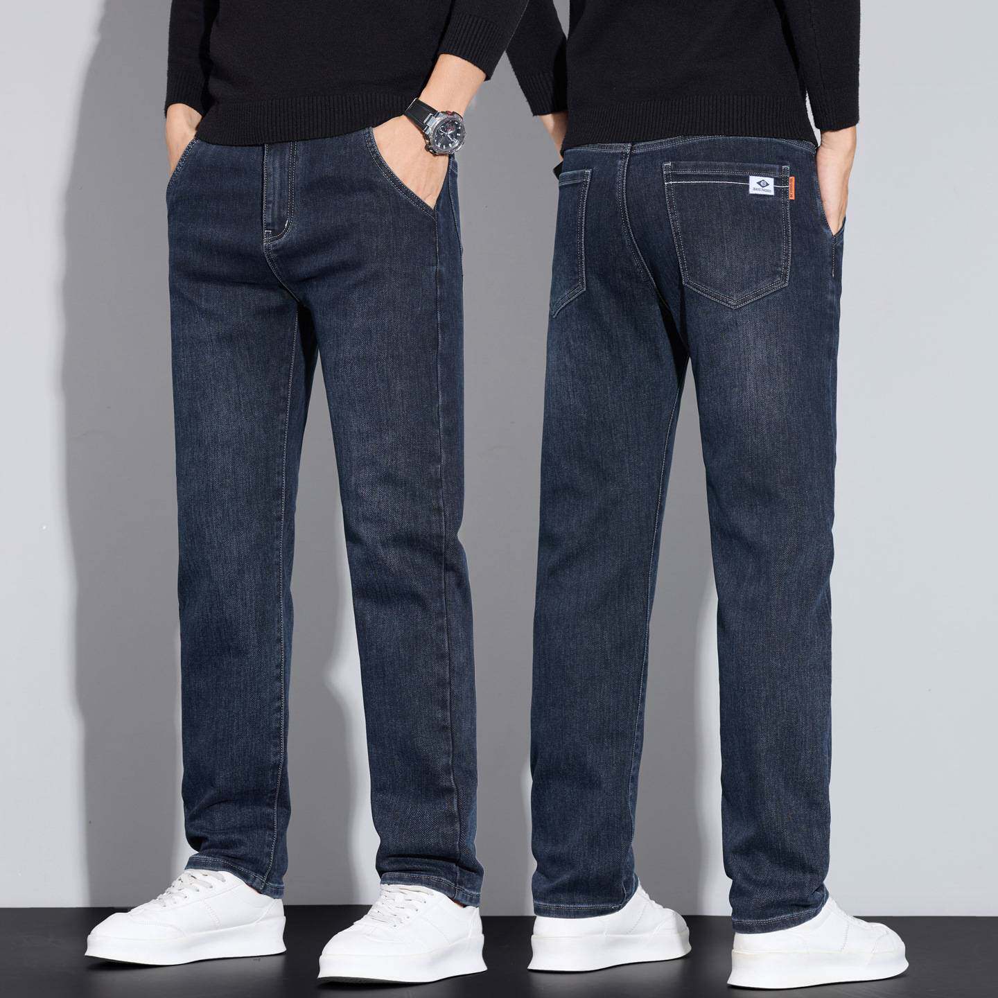 📚 江苏特别特羽绒服女款牛仔裤男秋冬季新款修身直筒水洗雾霾蓝加绒