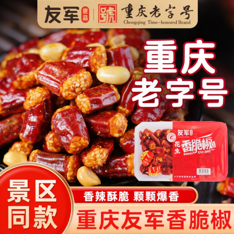 📚 正宗友军香脆椒重庆特产花生芝麻酥辣椒酥干吃辣椒休闲零食下酒菜