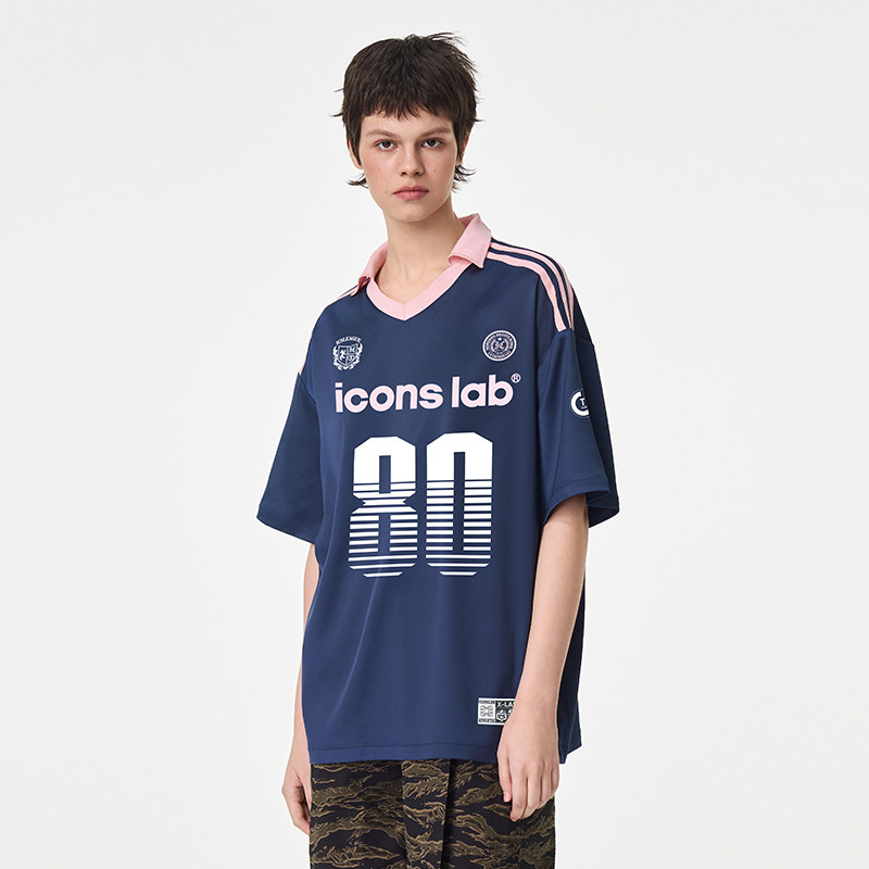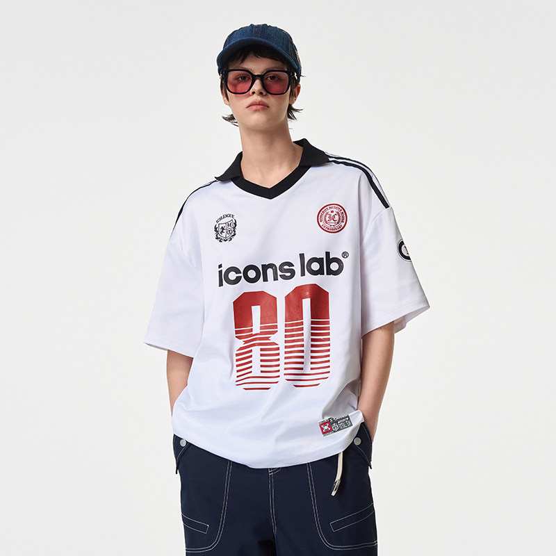 📚 ics丨iconslab美式球衣T恤设计感字母数字撞色缎面polo领短袖上衣
