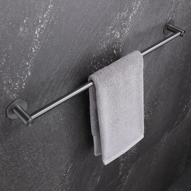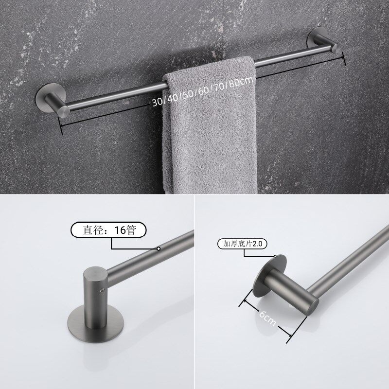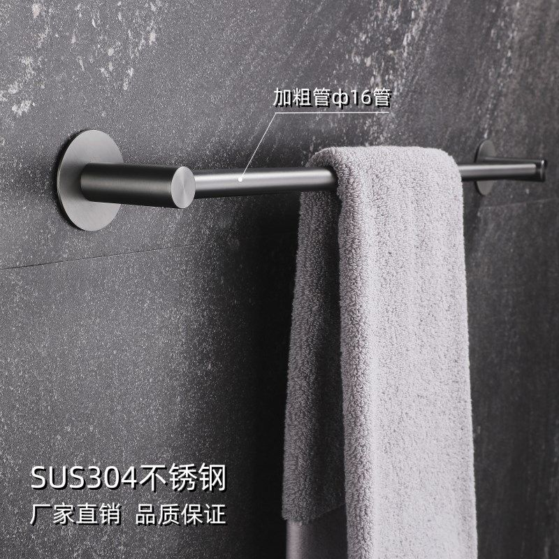 📚 浴室毛巾杆304不锈钢卫生v间免打孔单杆毛巾架枪灰德国轻奢加长款