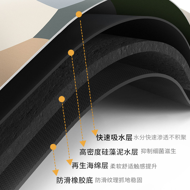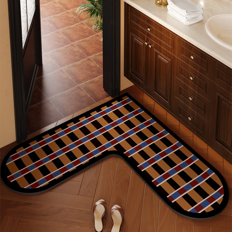 📚 高级中古风浴室吸水垫心形l型地垫卫生间门口速干防滑硅藻泥脚垫