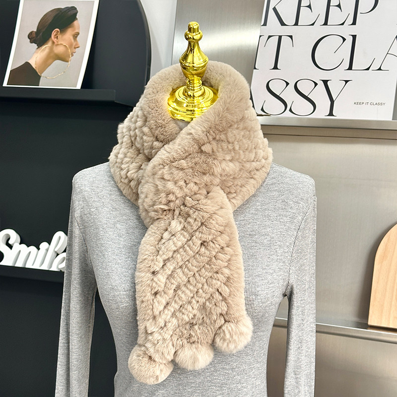 📚 韩国ins真獭兔毛皮草编织围巾双面加厚保暖围脖皮草可爱球球毛领