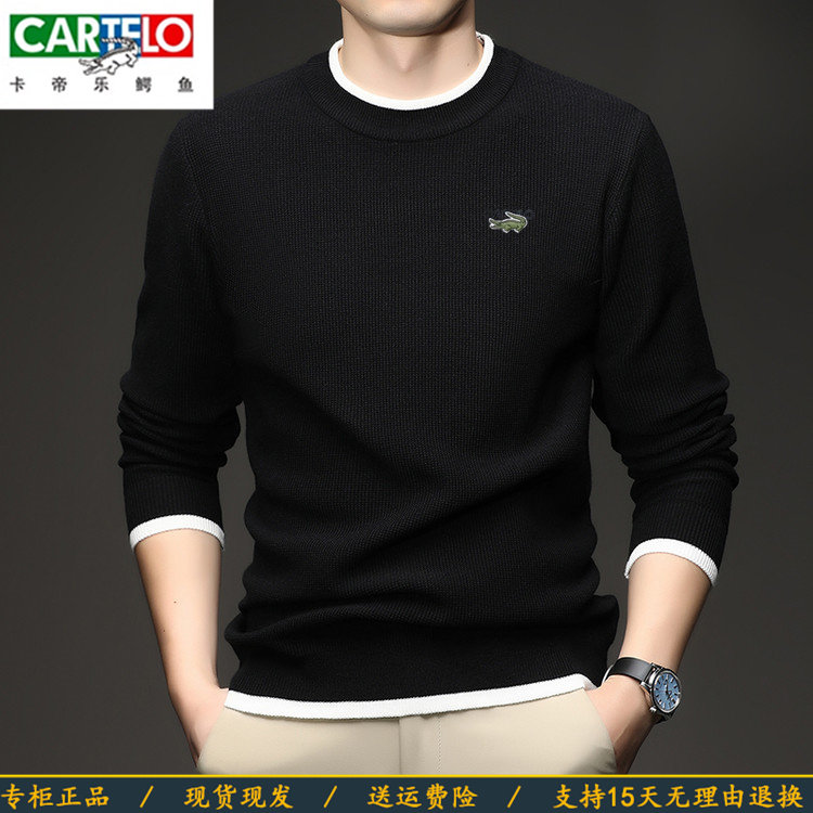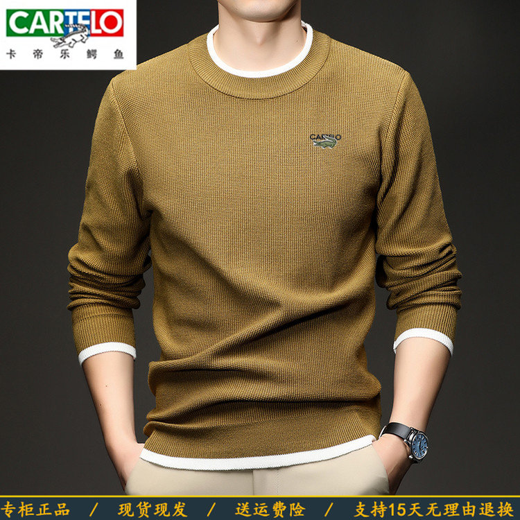 📚 卡帝乐鳄鱼男士秋冬新款加厚华夫格针织衫毛衣套头衫打底衫羊毛衫