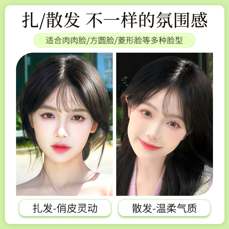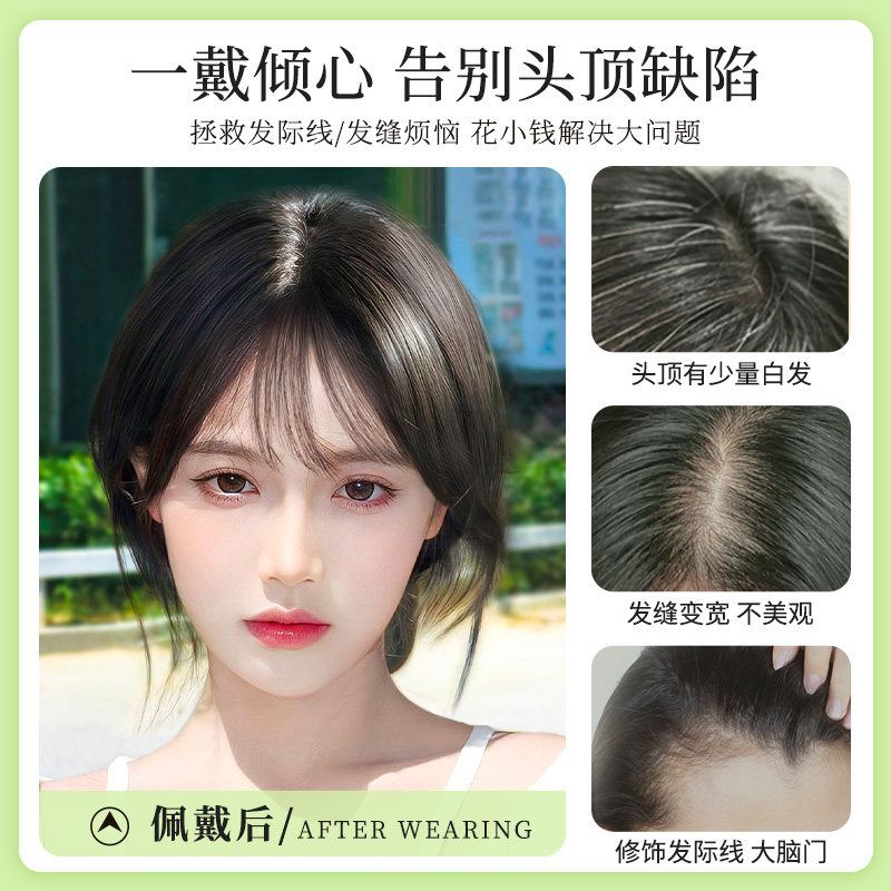 📚 空气刘海假发女片头顶遮白发补发真发轻薄法式假刘海高颅顶齐刘海