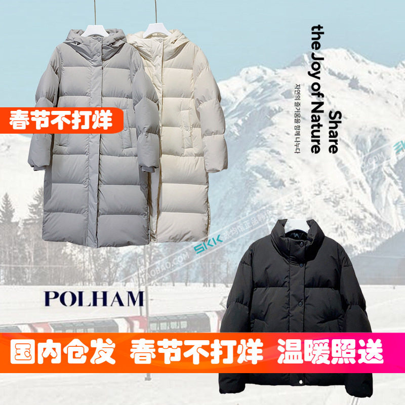 📚 反季韩国代购Polham加厚中长款连帽羽绒服防寒服女轻便净版短外套