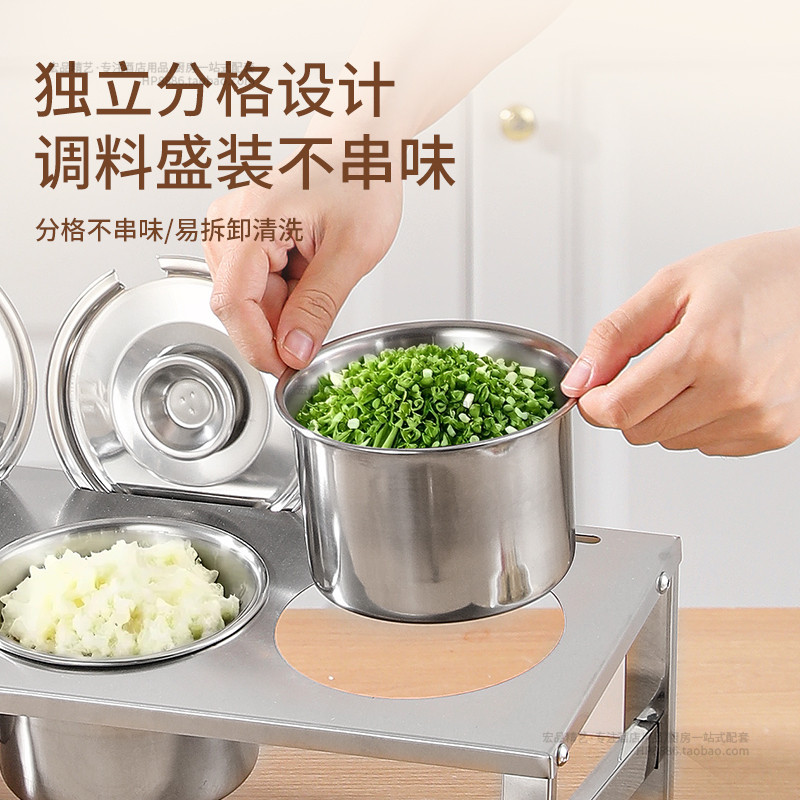 📚 304不锈钢调料架圆格调味架果酱盒小料冰粉配料盒摆摊分格收纳架
