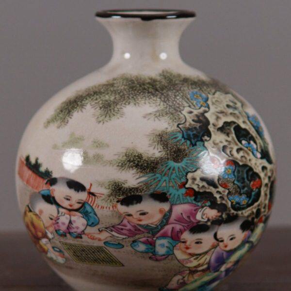 📚 仿古大清同治粉彩婴戏图石榴花瓶瓷器做旧中式摆件古玩收藏