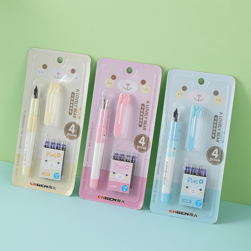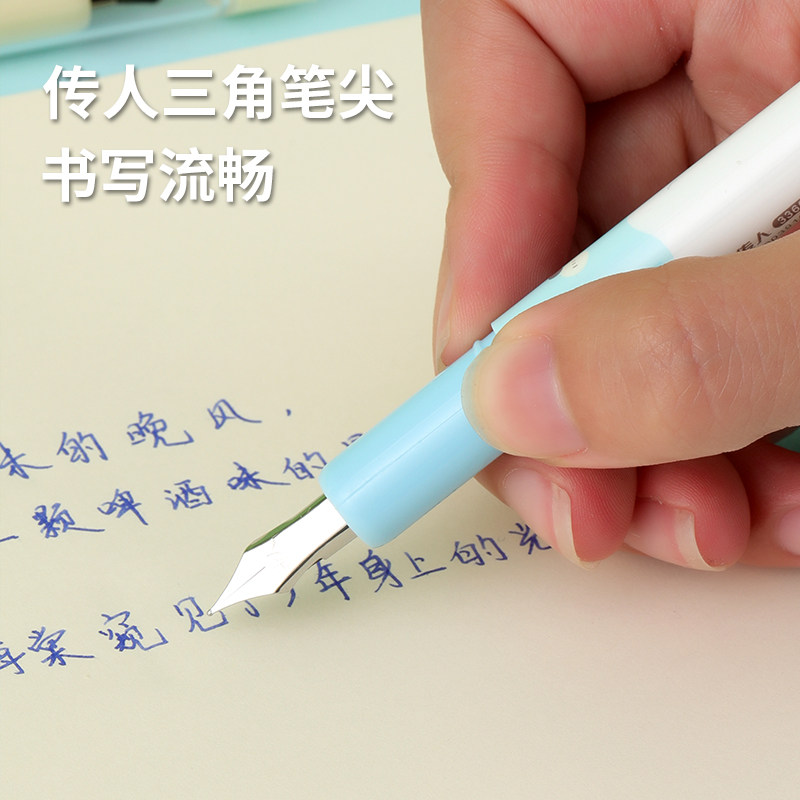 📚 传人3360K学生钢笔可替换墨囊吸卡装三年级小学生专用初学者儿童练字直液式钢笔蓝色六年级礼物奖品毕业
