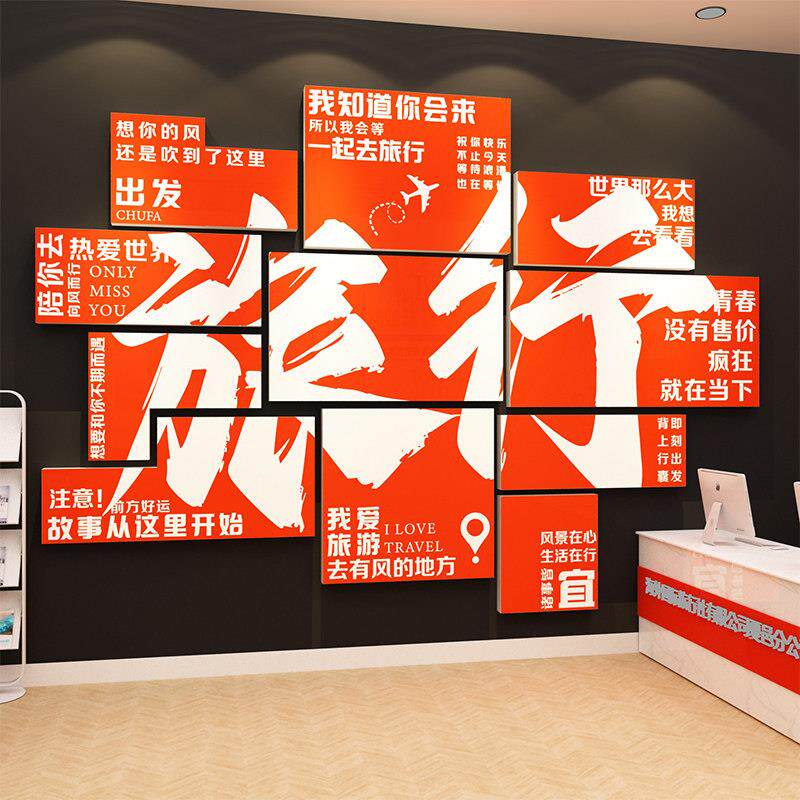 📚 网红旅行社墙面装饰画企业文化贴门店办公室氛围布置公司背景形象