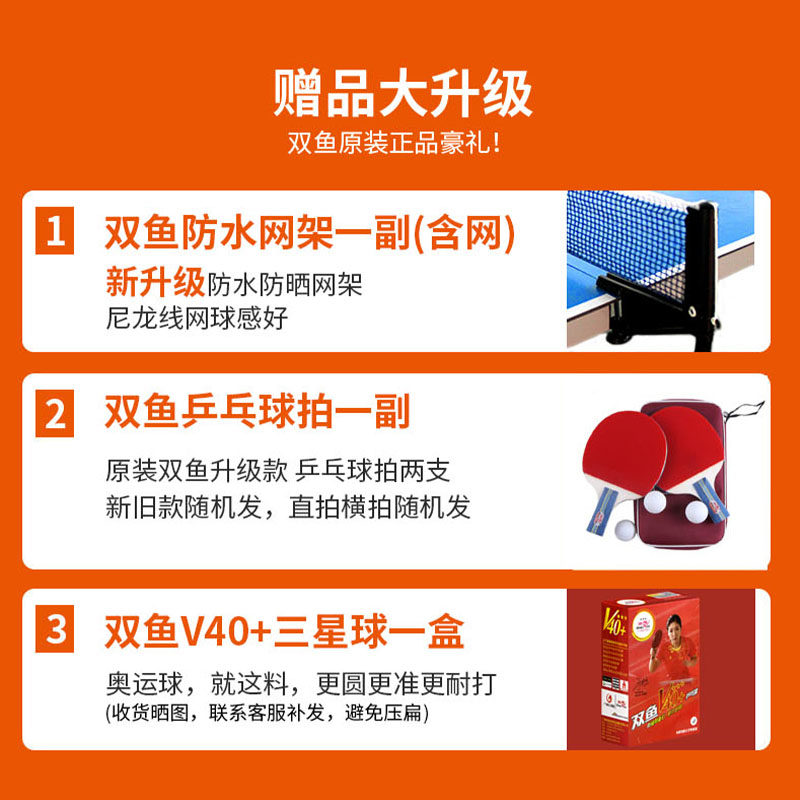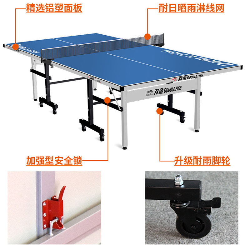 📚 双鱼室外乒乓球桌可折叠式H138户外乒乓球台案子家用标准防水防晒
