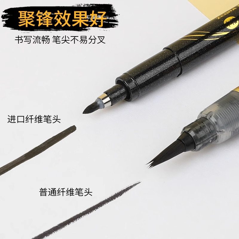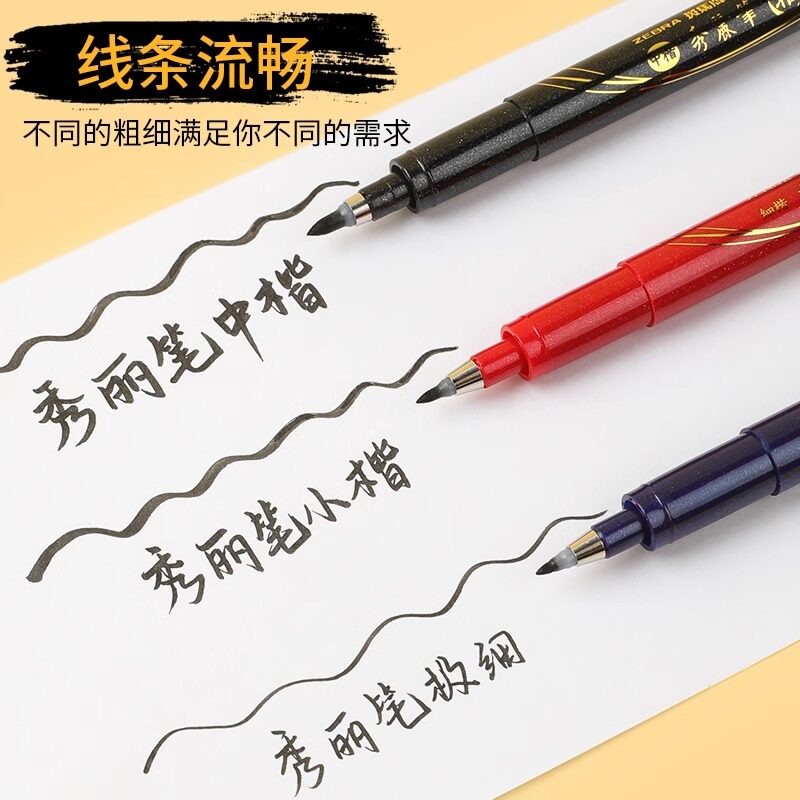 📚 日本zebra斑马牌秀丽笔小楷字帖软笔软头黑色细楷成人书法练字签名科学仿毛笔钢笔式中楷美术用专海绵头极细