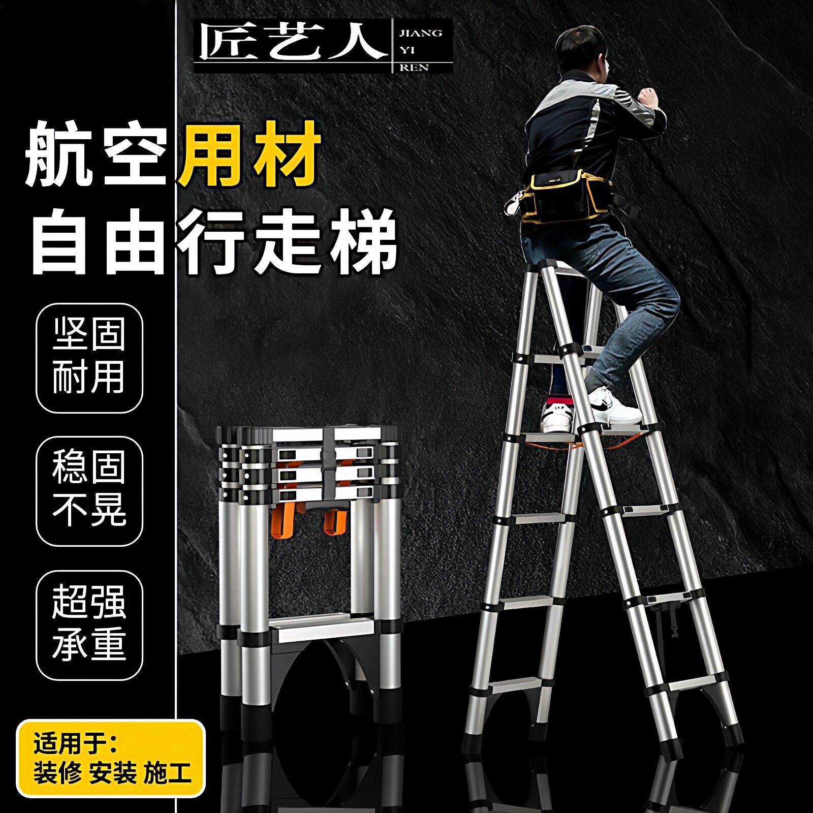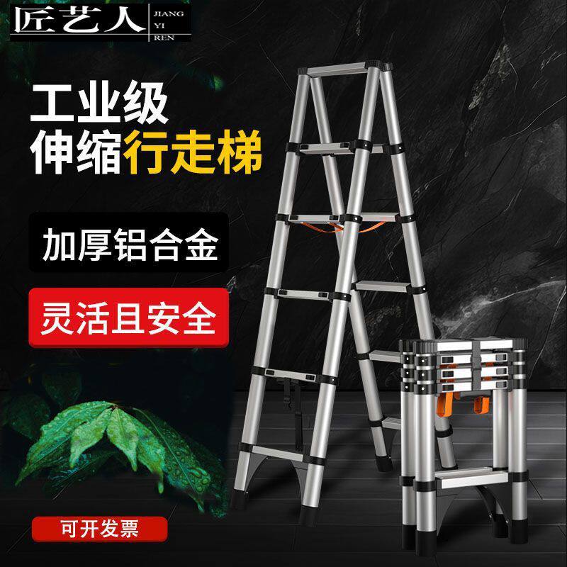 📚 可行走伸缩梯子加厚铝合金折叠人字多功能工程梯家用装修木工用梯