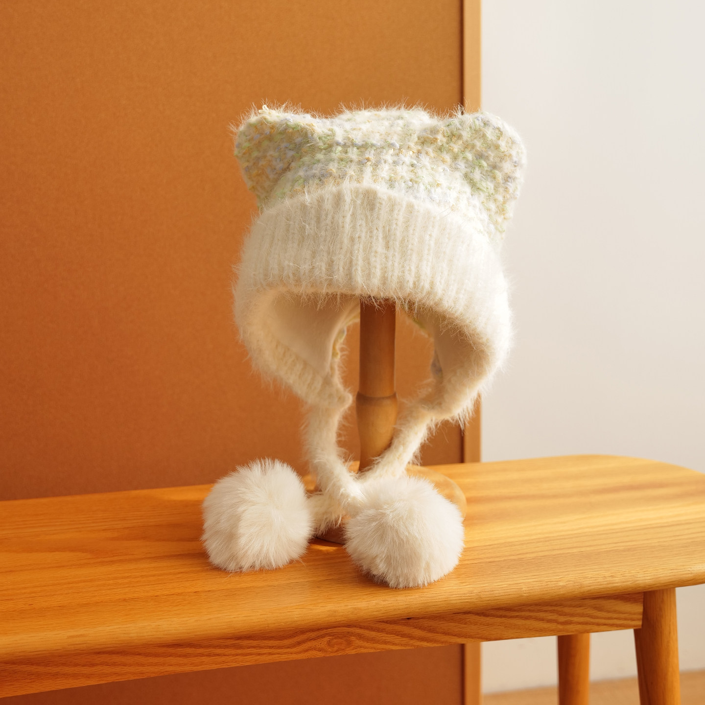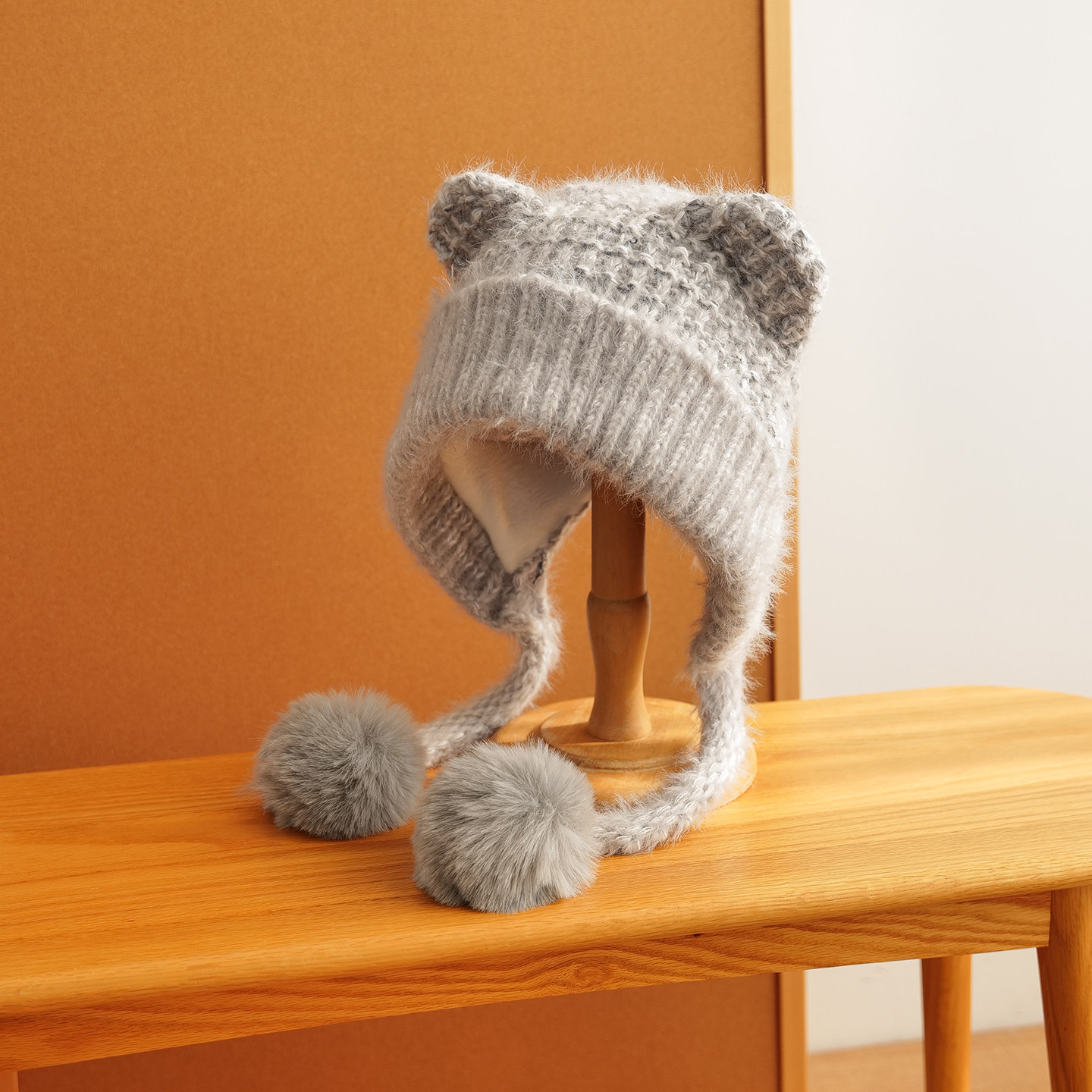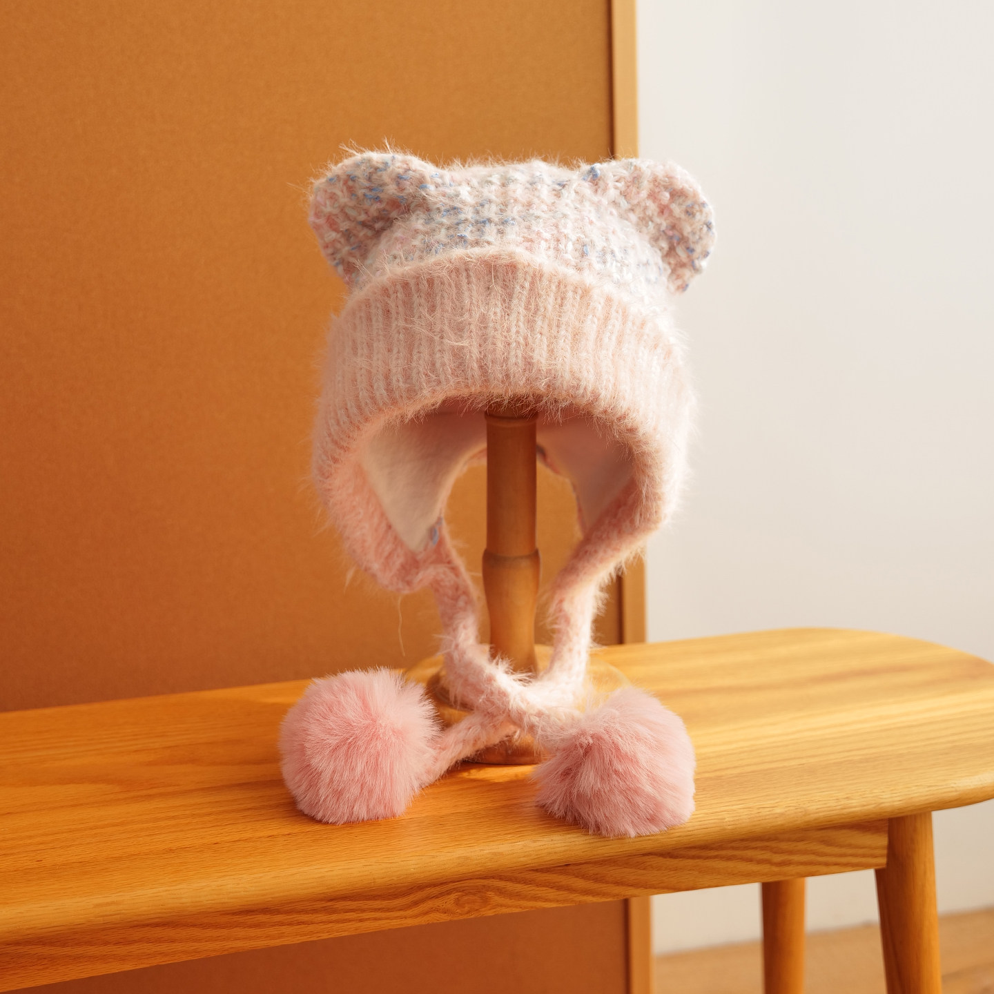 📚 素单舍西毛绒小熊耳朵针织毛线帽女秋冬加厚保暖护耳大头围雷锋帽