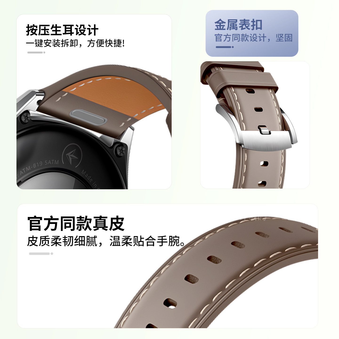 📚 适用OPPO Watch S表带oppowatchs手表x2新款冰川灰真皮腕带4pro男款3pro复合素皮oppo智能X3/2/1竞速黑替换带