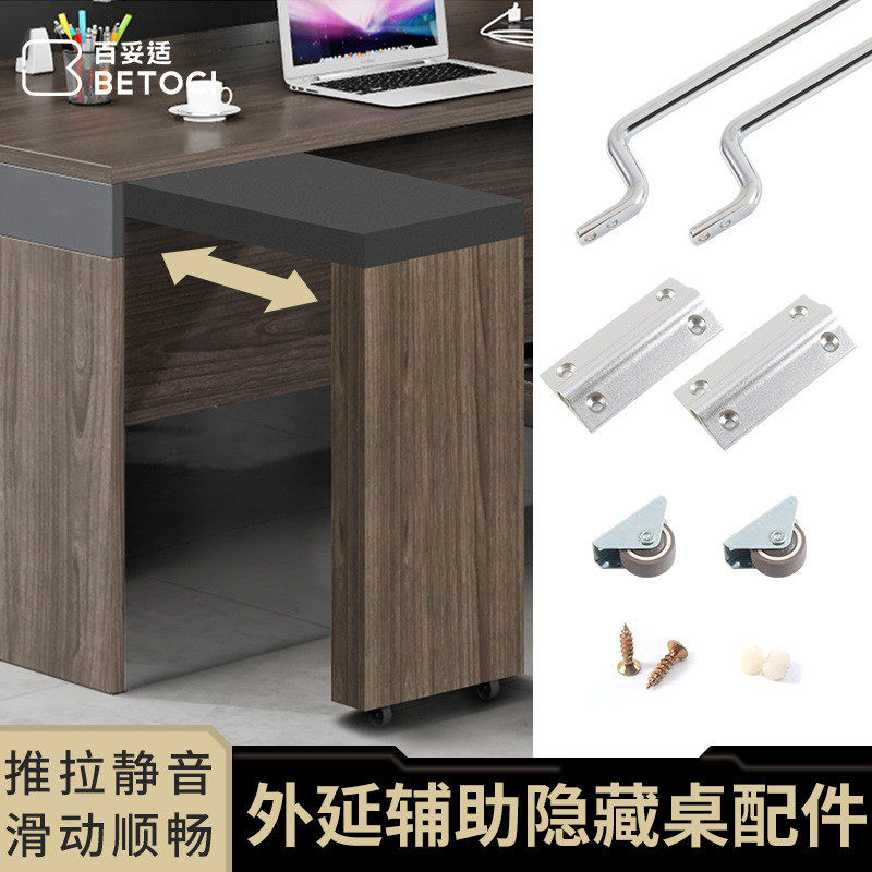 📚 多功能外延辅助隐藏抽拉桌导轨书桌办公桌台面推拉滑轨五金配件