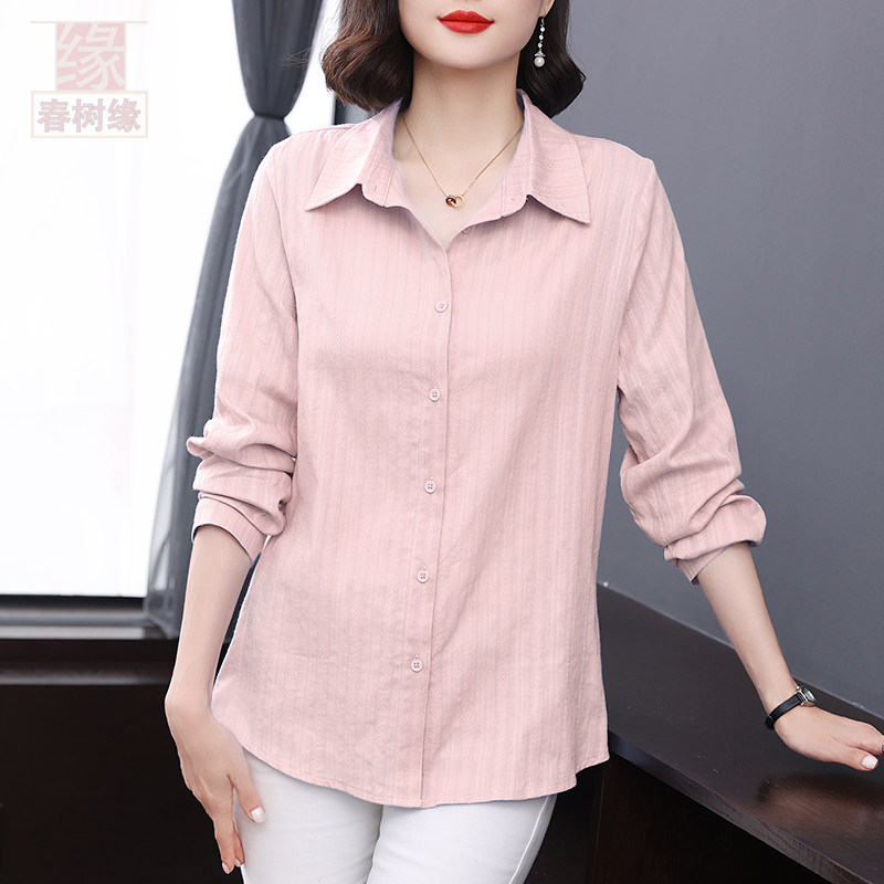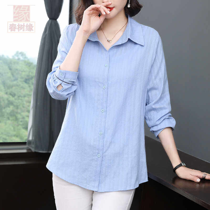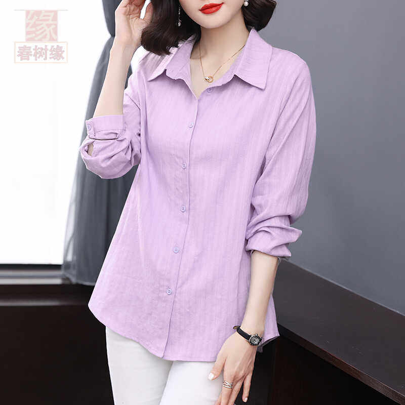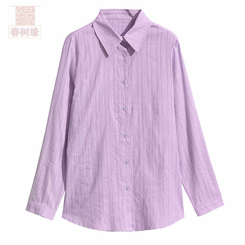 📚 100%棉浅紫色开衫翻领T恤夏长袖衬衫女夏季薄款2026新款纯棉宽松