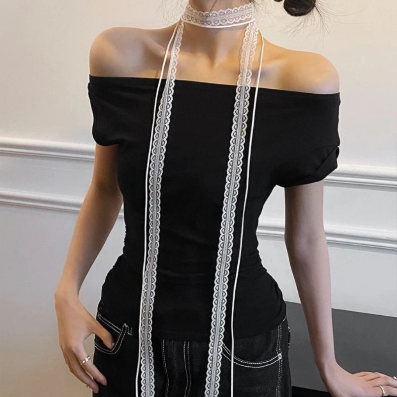 📚 甜酷风蕾丝长条丝巾春夏叠戴锁骨链新款精致丝带配饰时尚独特饰品