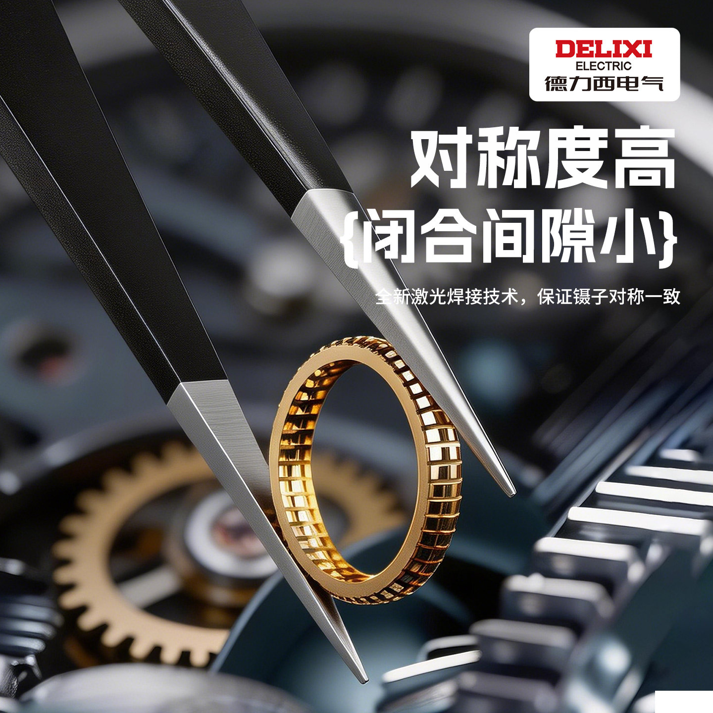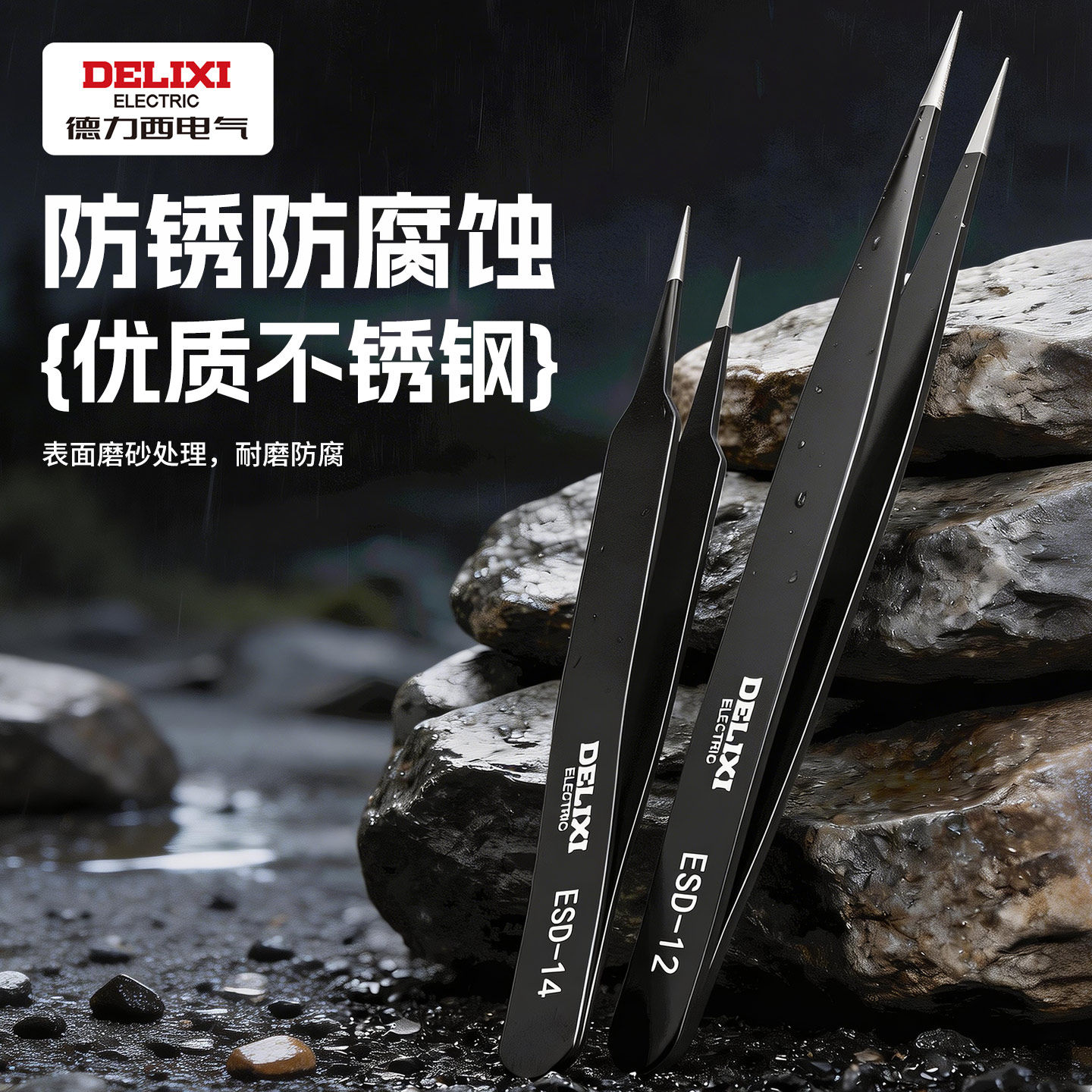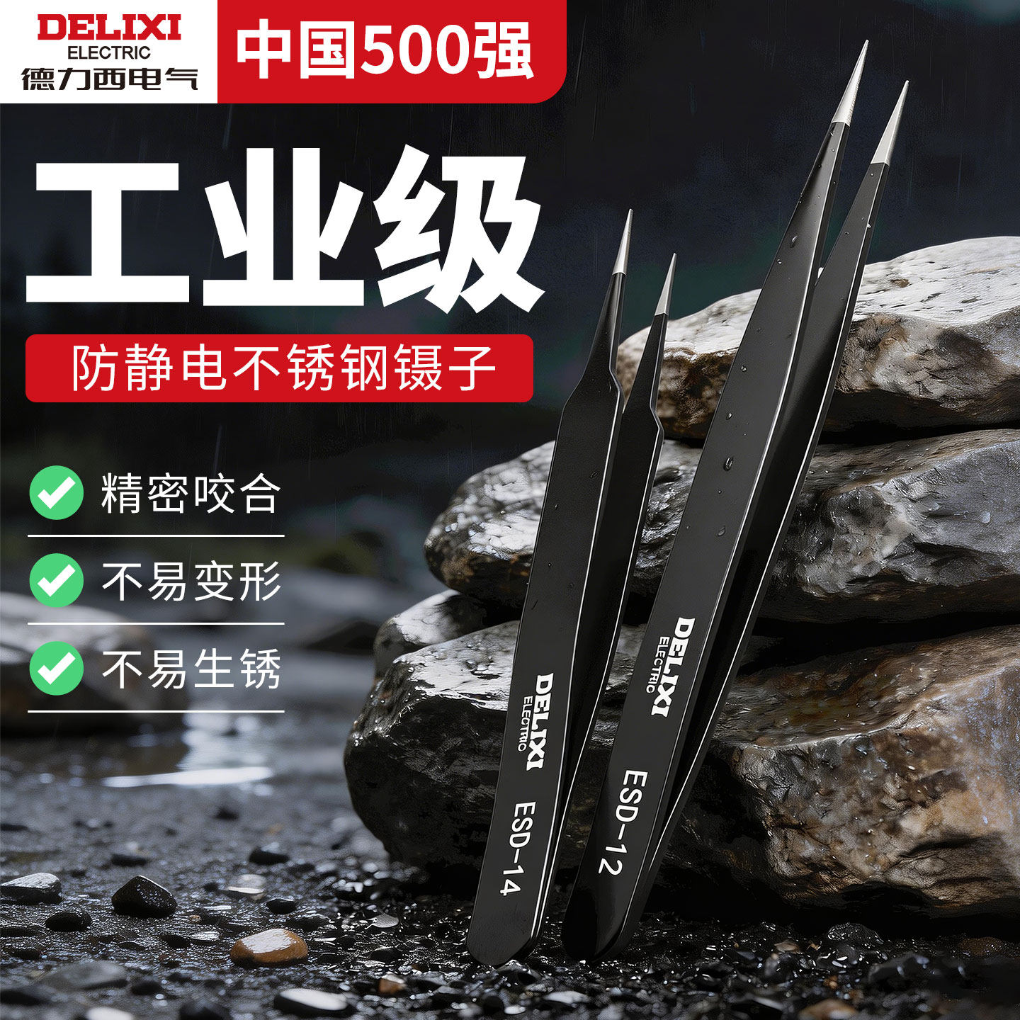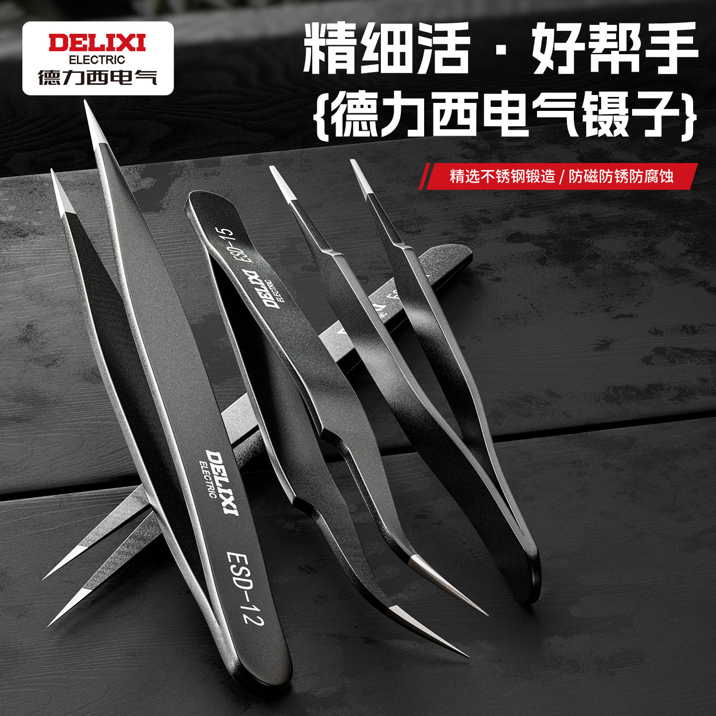 📚 德力西不锈钢加厚镊子尖头列子高精密维修捏子防静电聂子夹子工具