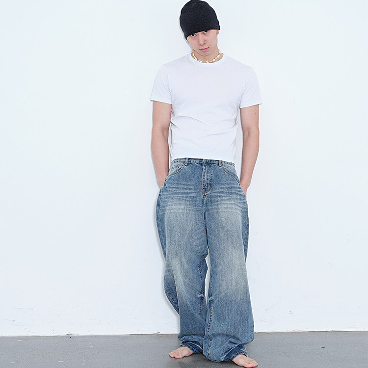📚 FSG 立体压褶复古冰蓝牛仔裤