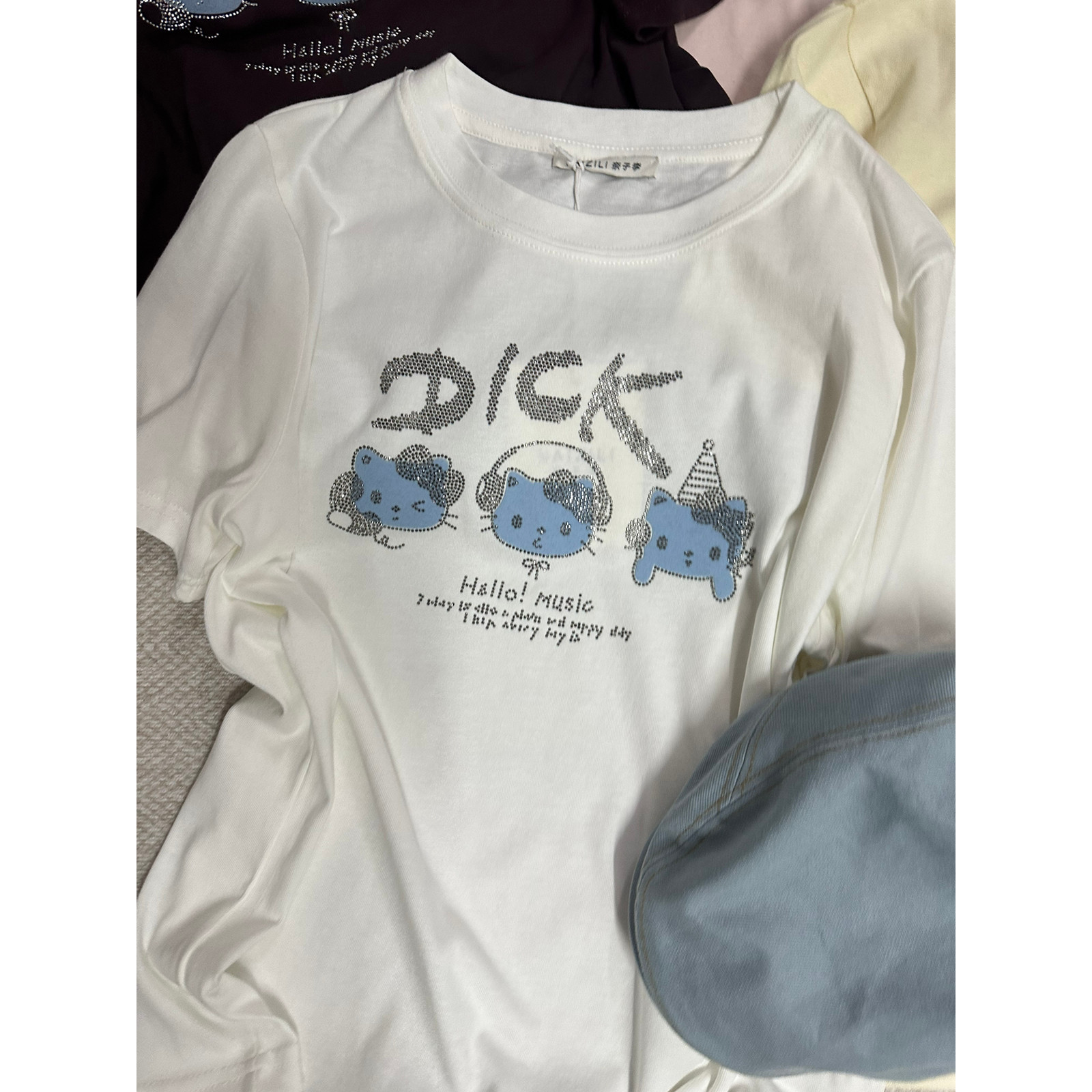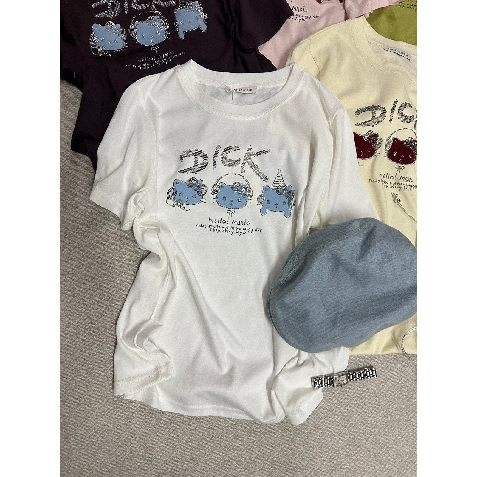 📚 流品尚奈子-26夏韩版休闲宽松卡通字母短袖T恤 (不含帽子+包包)