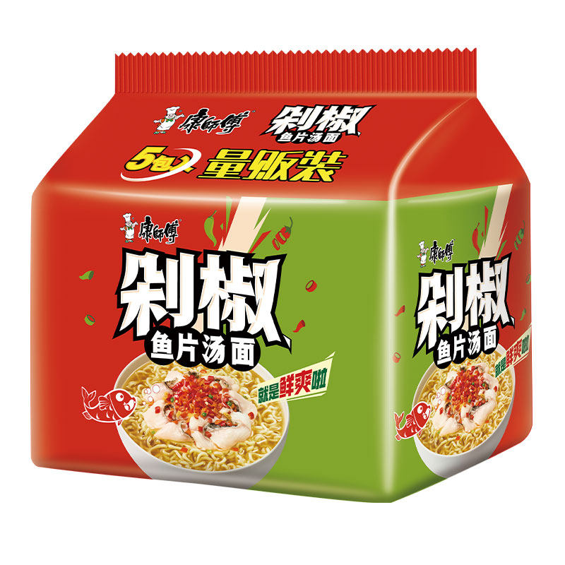 📚 康师傅剁椒鱼片汤面方便面泡面夜宵速食充饥解饿袋装105克新口味