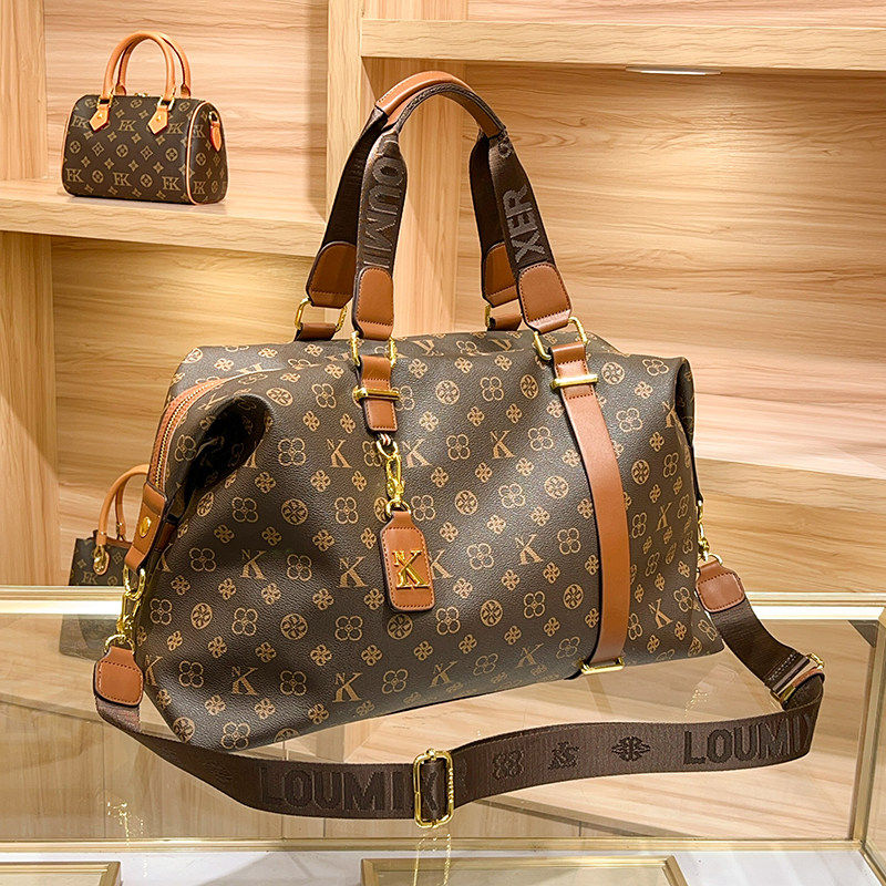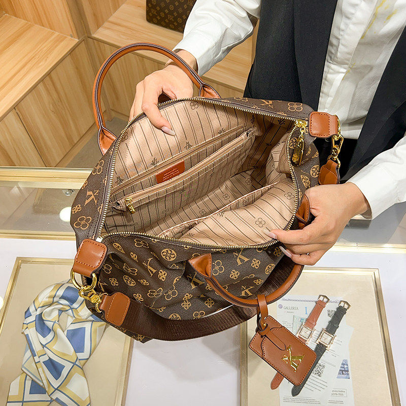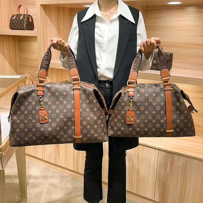 📚 香港正品代购新款真皮旅行包女士大容量手提包牛皮行李袋复古老花