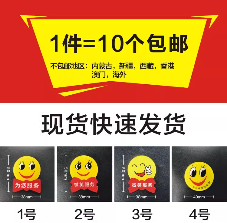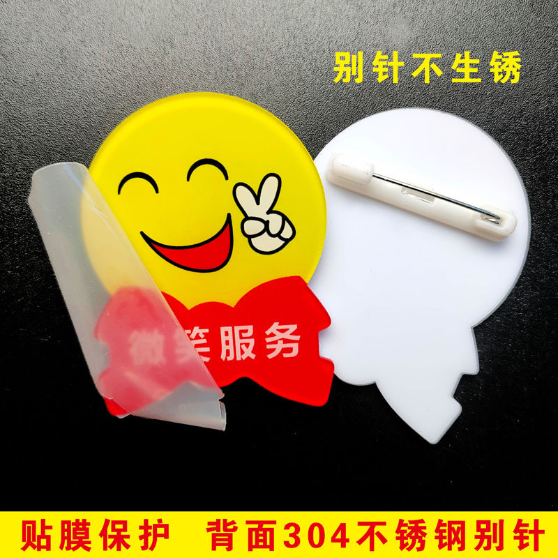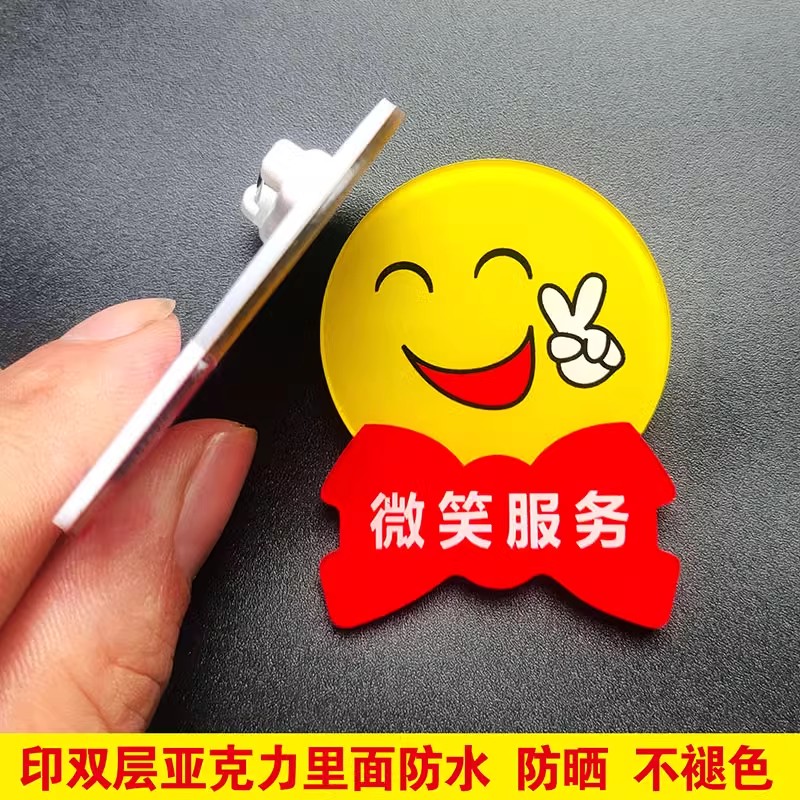 📚 亚克力笑脸胸牌定做微笑很高兴为您服务圆形员工工号牌别胸针定制