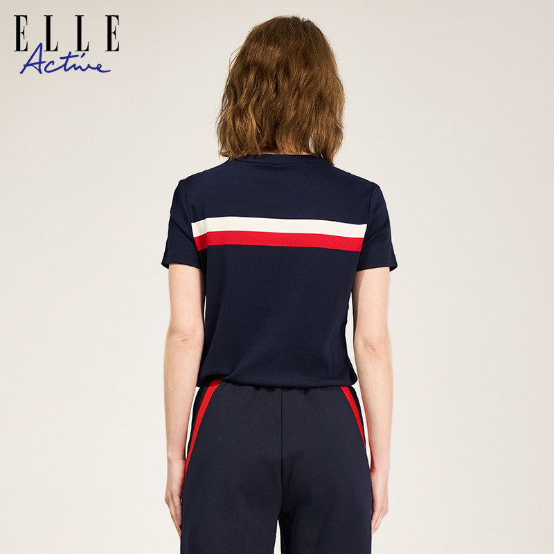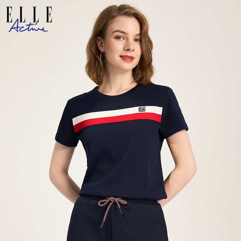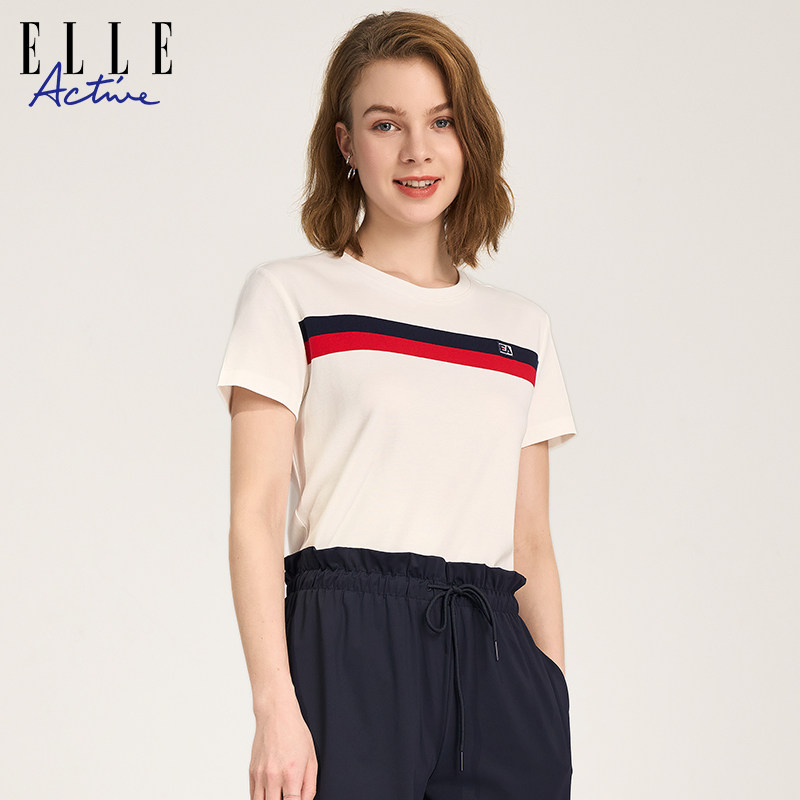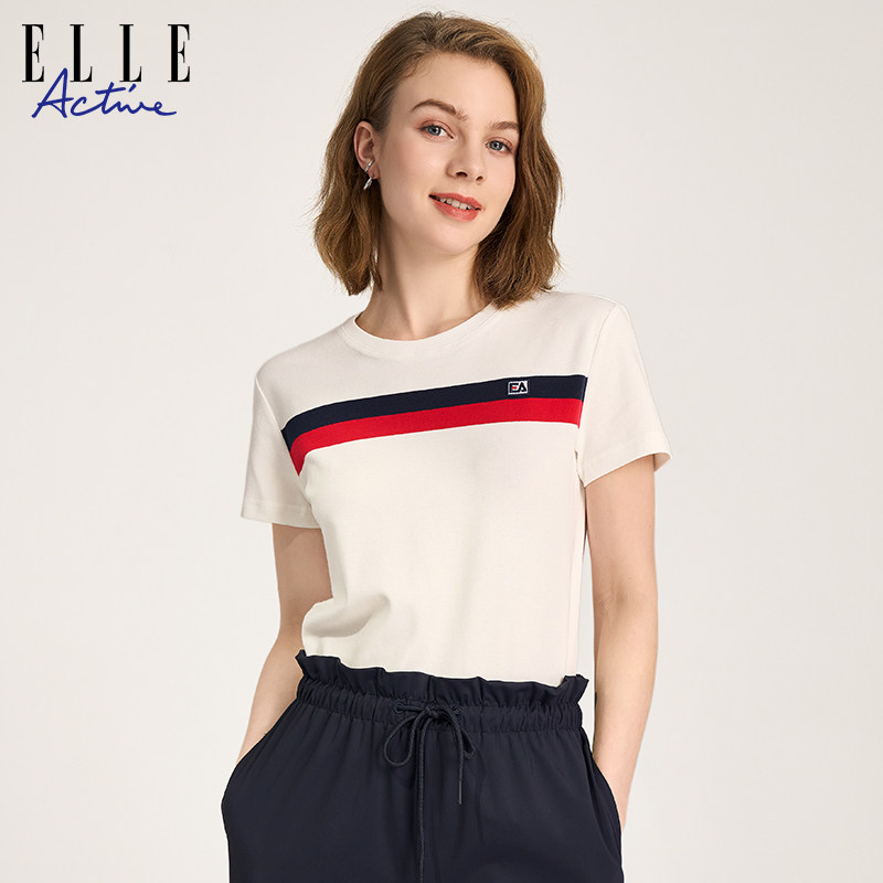 📚 ELLE ACTIVE女装t恤女新款舒适透气简约纯棉短袖休闲显瘦气质上衣