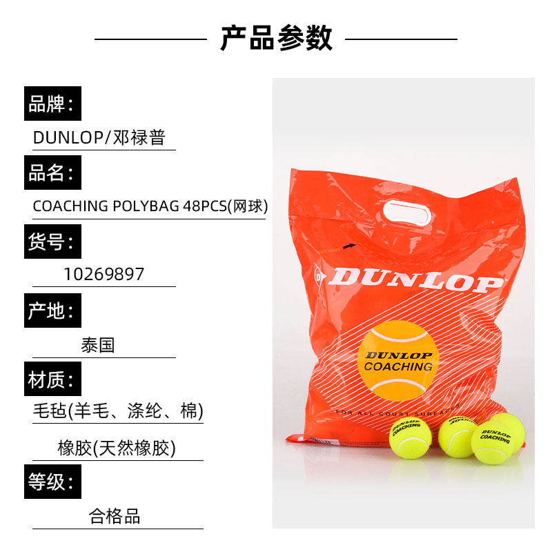 📚 dunlop邓禄普网球COACHING耐打高弹无压初学训练专业比赛用球60装