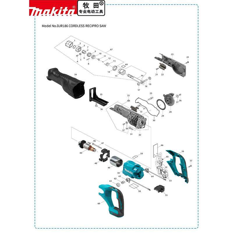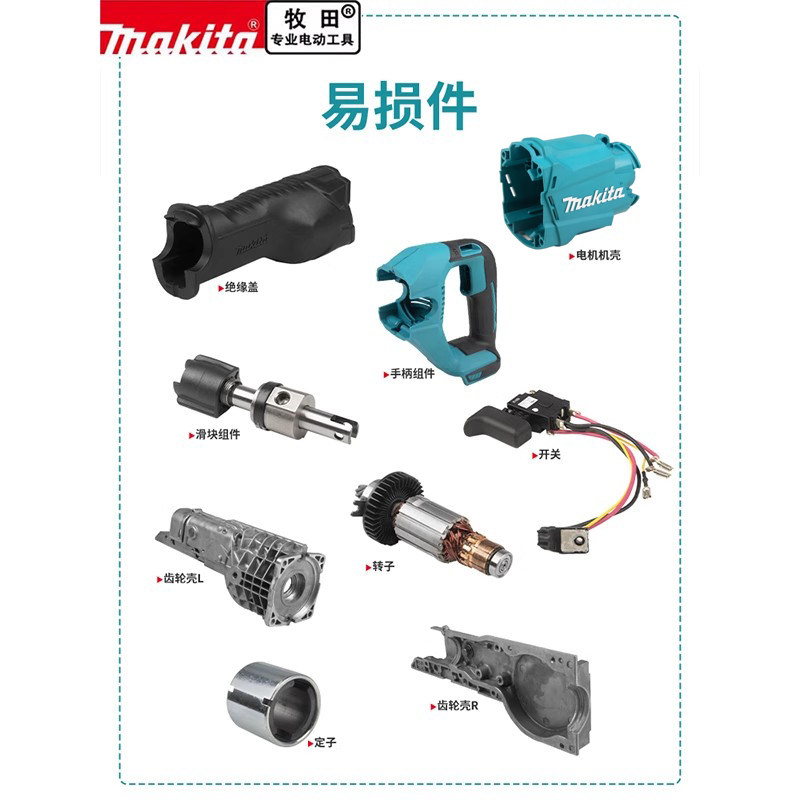 📚 makita牧田往复锯原厂配件DJR186转子开关控制器齿轮箱手柄碳刷握