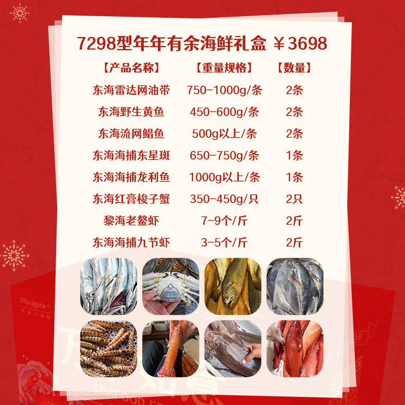 📚 7298型海鲜大礼包冷冻新鲜舟山海鲜套餐年货礼盒团购新鲜水产组合