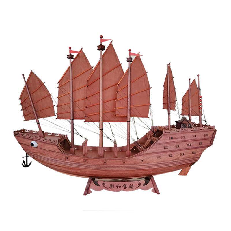 📚 木船模巴西花梨郑和宝船52x13x42cm木质摆件工艺品郑和宝船模