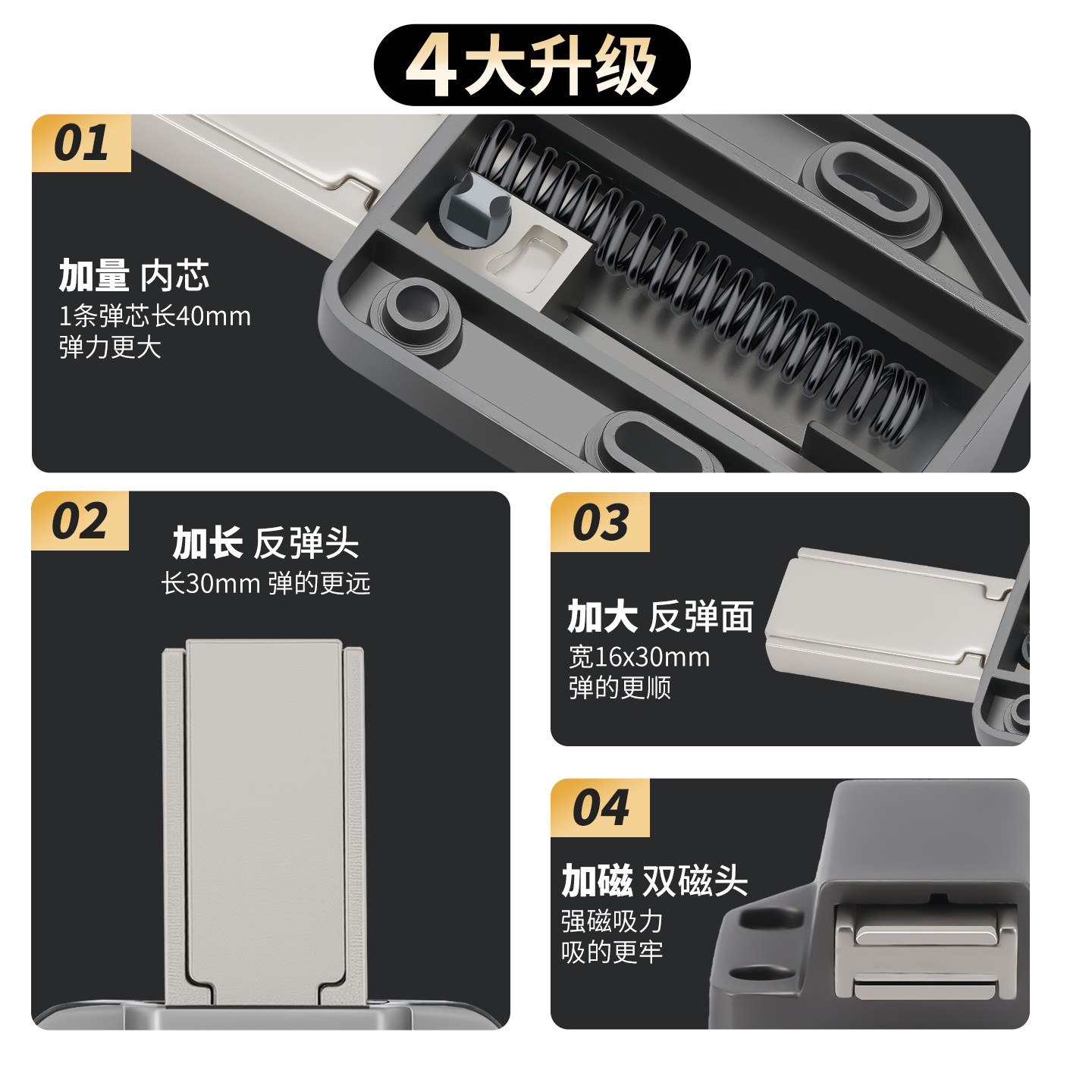 📚 免拉手按压式合金反弹器橱柜门吸隐形自弹器强磁吸碰珠开关门柜吸