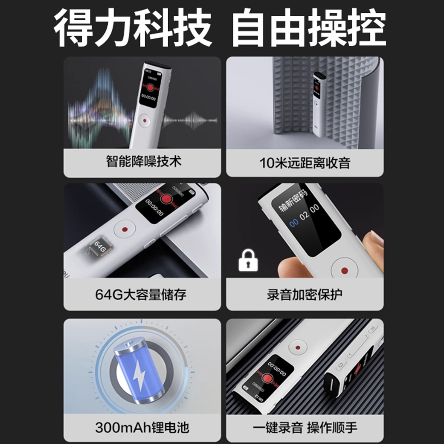 📚 得力录音笔小随身专业高清降噪可以转文字学生上课用会议录音设备