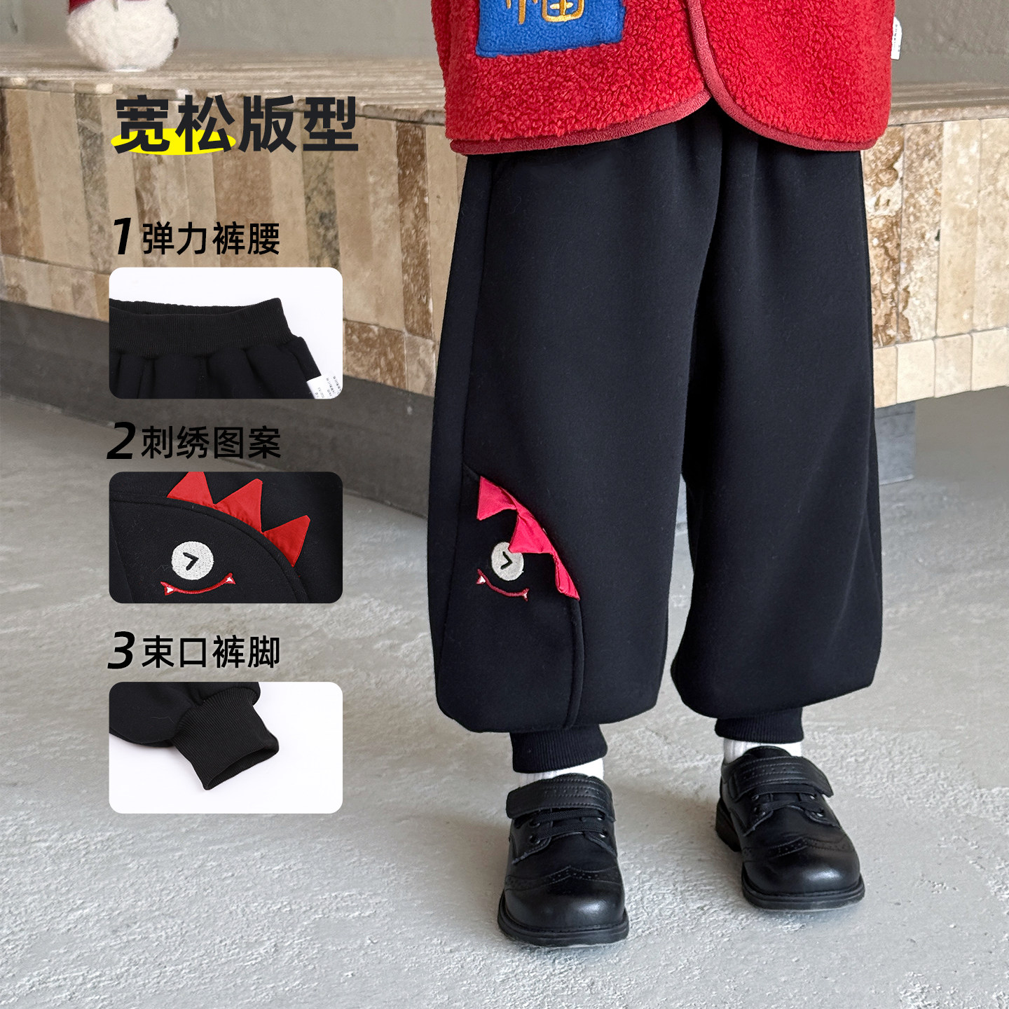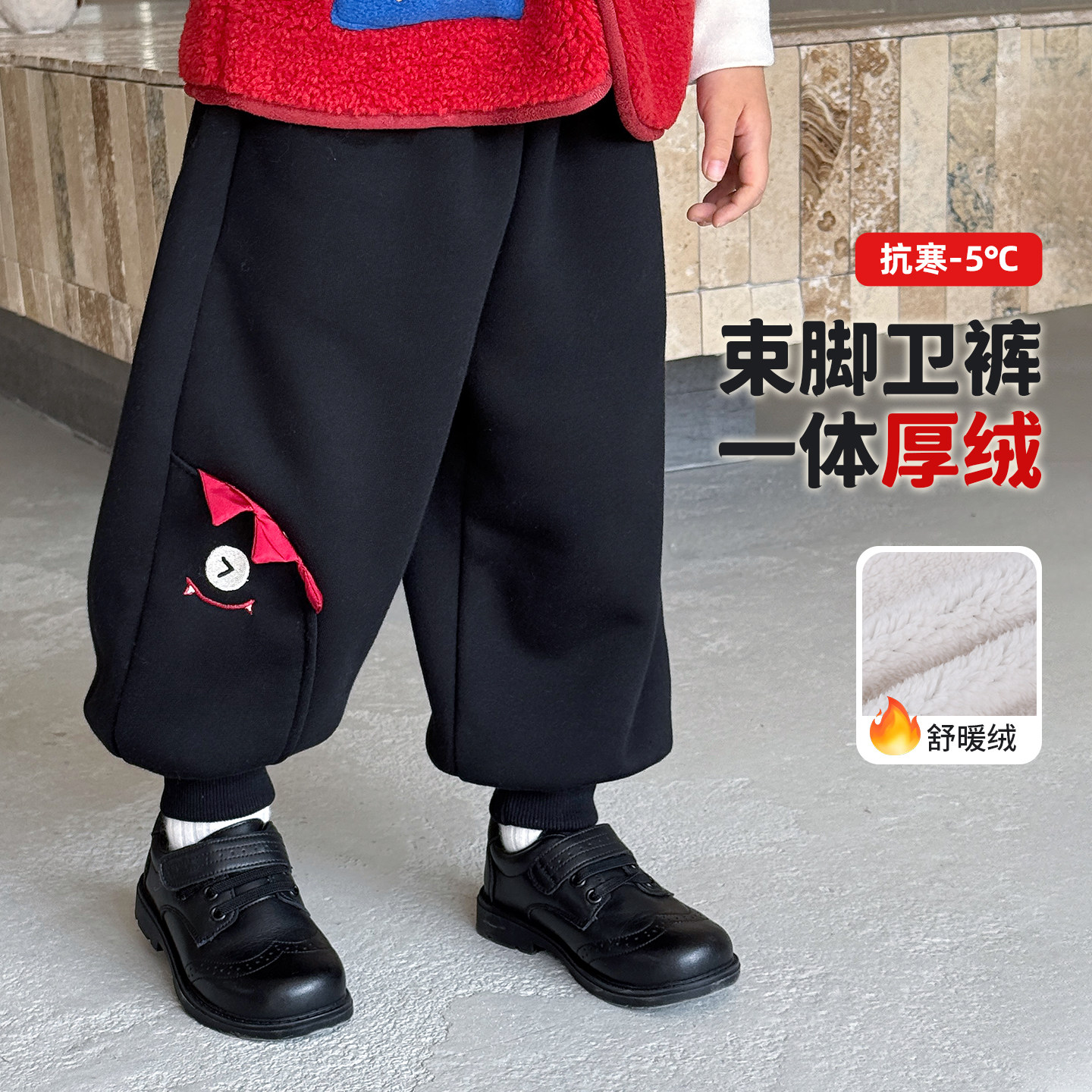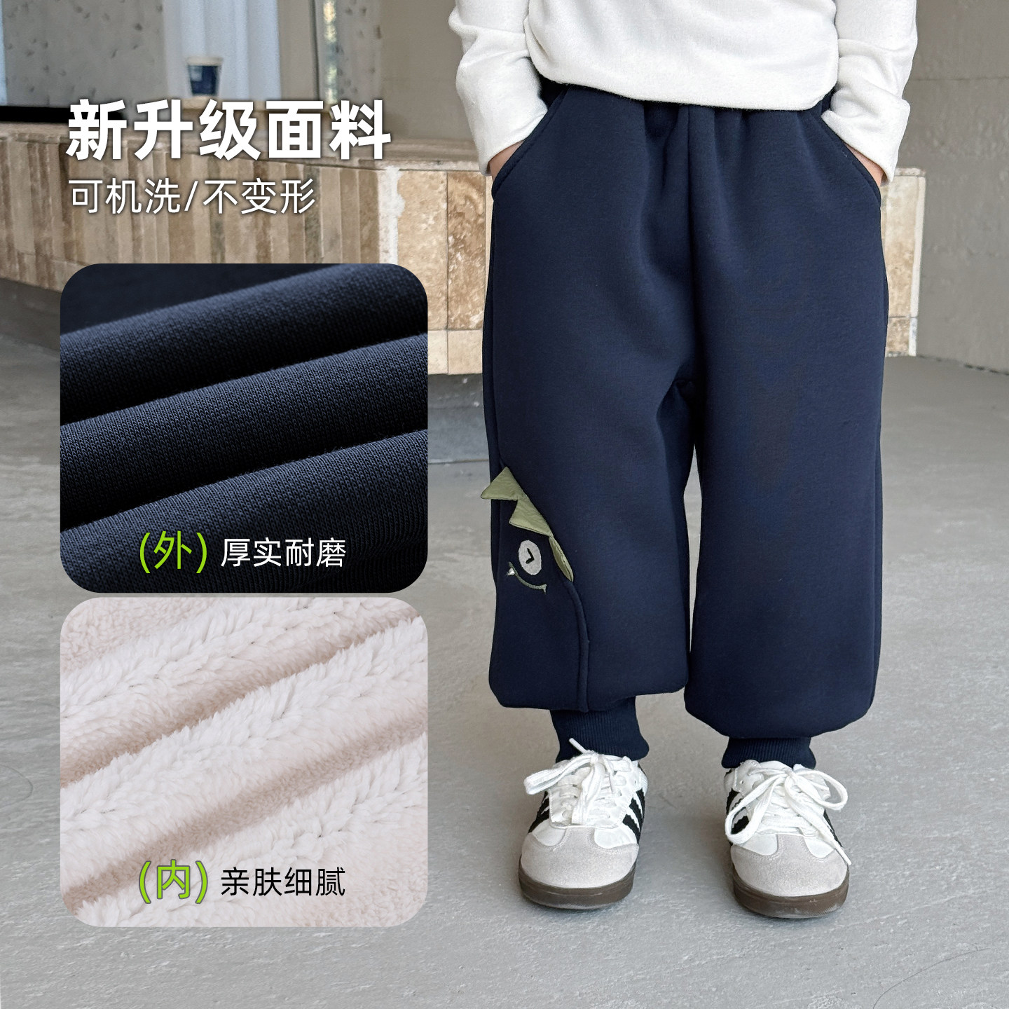📚 男童加绒裤子冬加厚儿童运动裤2025冬季新款男孩一体厚绒卫裤帅气