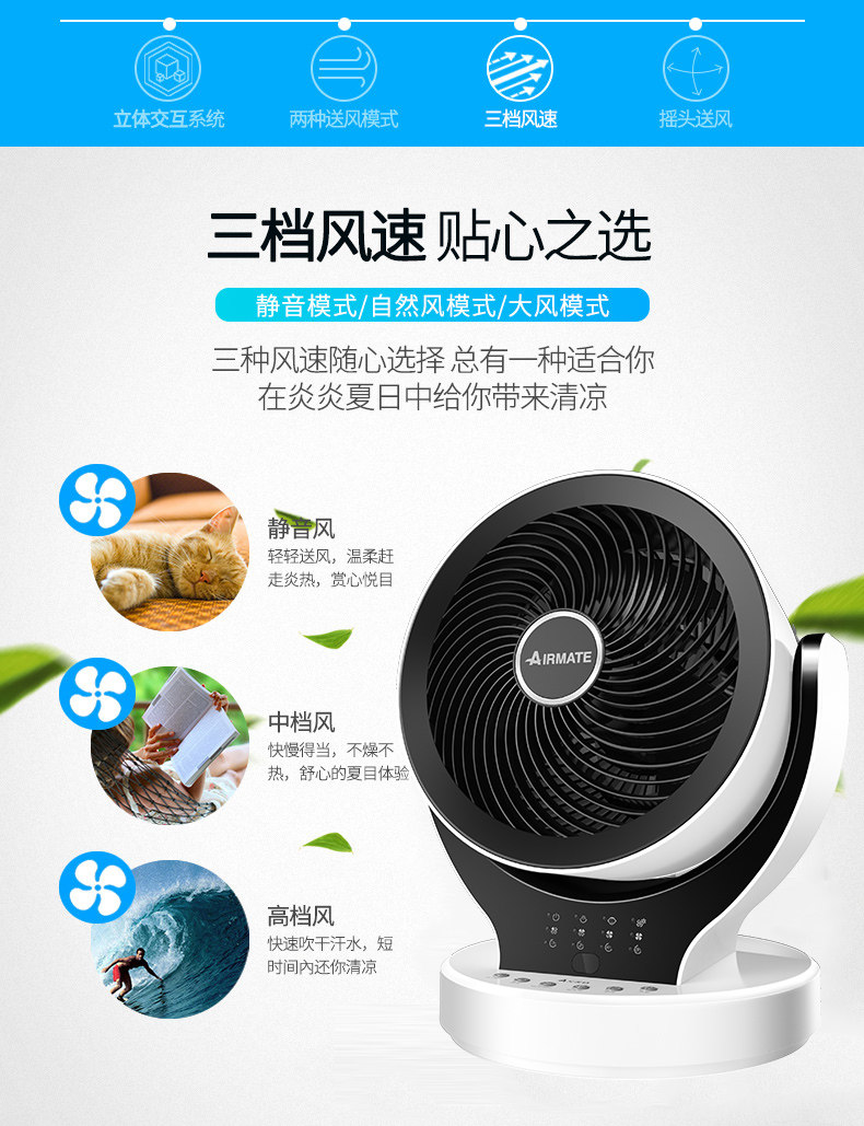 📚 艾美特空气循环扇家用扇静音台式台扇涡轮对流遥控电风扇FB2374R